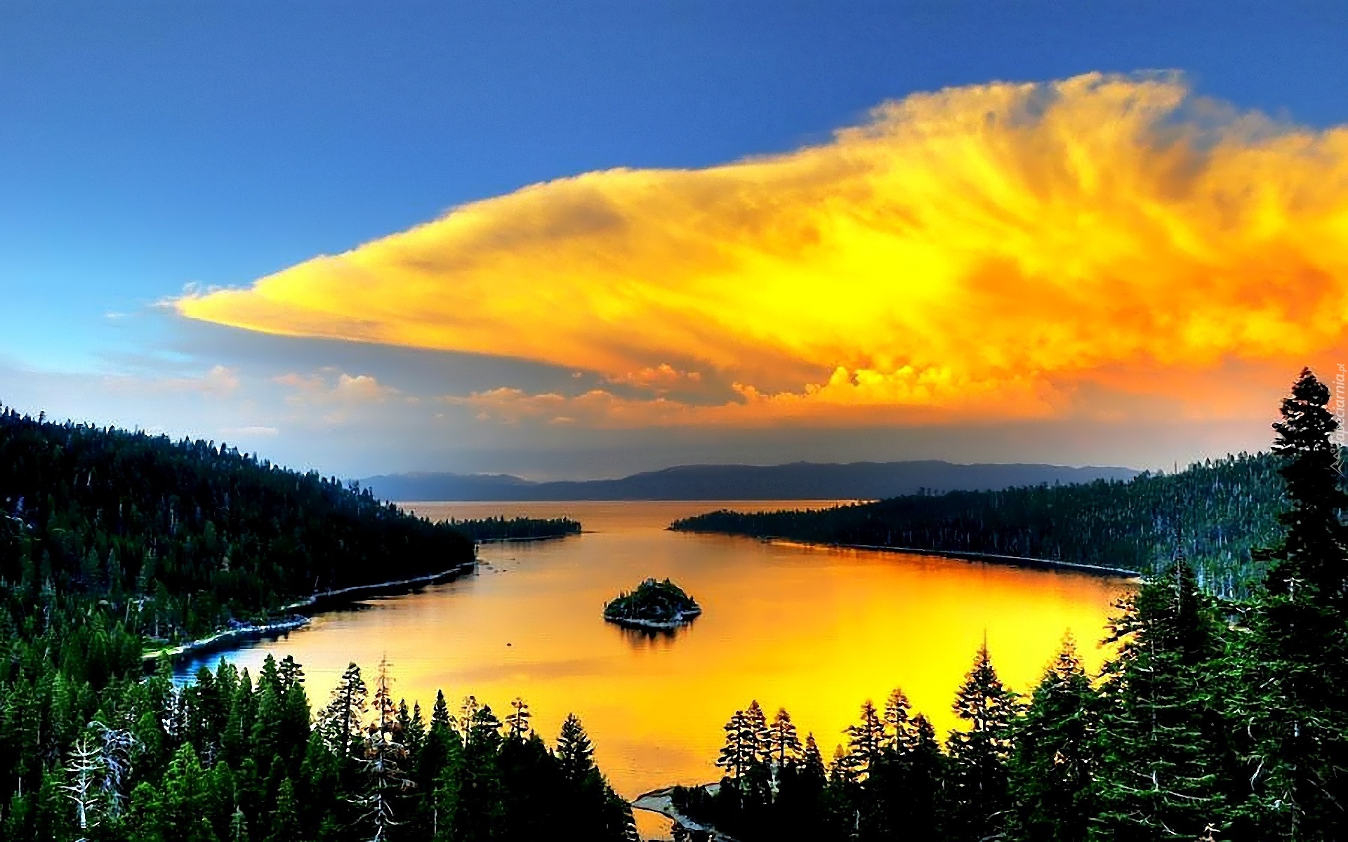 Edytor tapety: Zachód, Słońca, Rzeka, Las