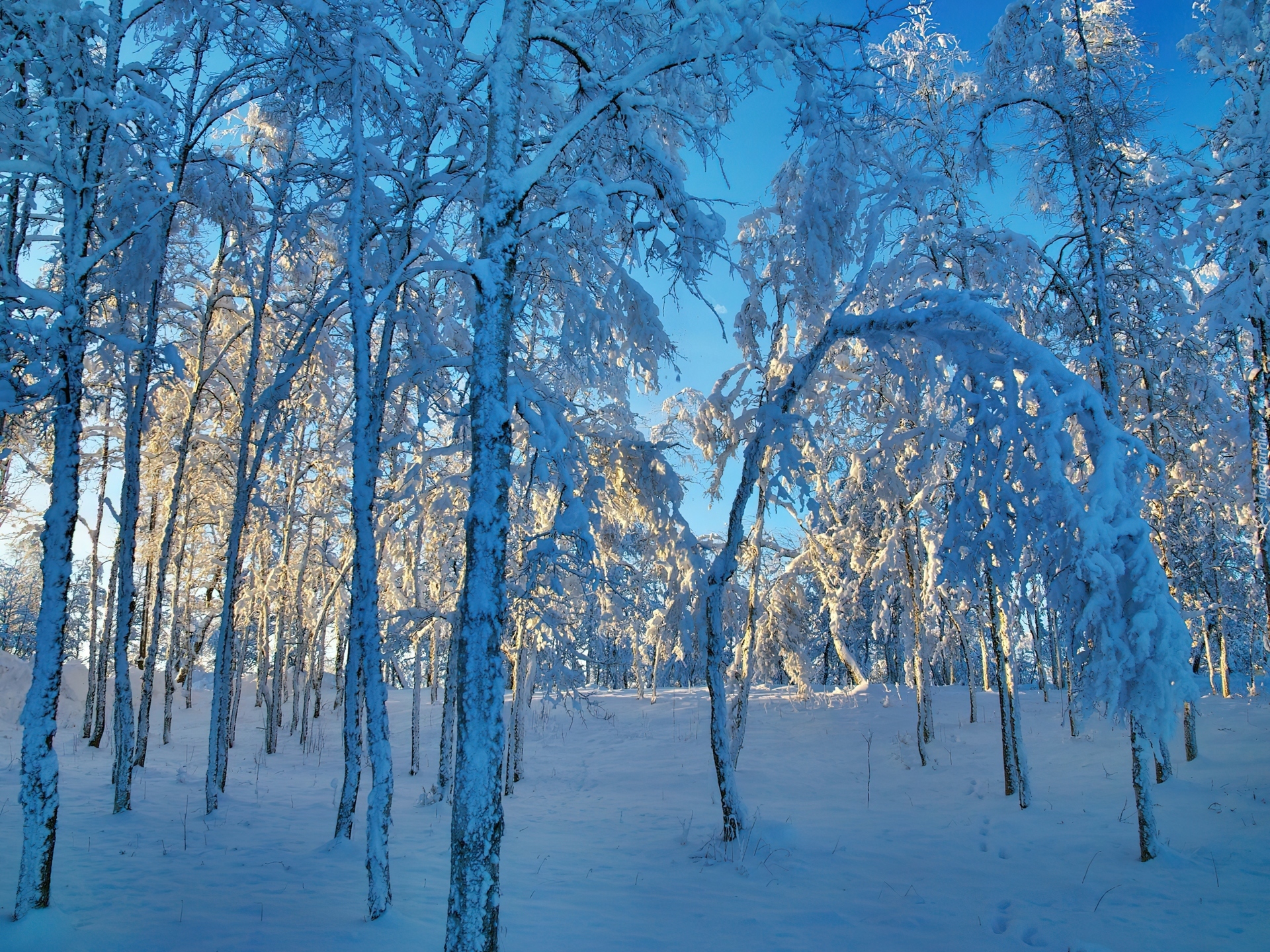 Edytor tapety: Las, Ośnieżone, Drzewa, Poranek