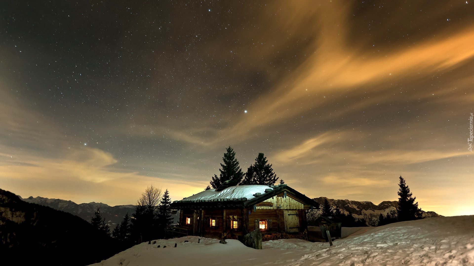 Edytor tapety: Niebo, Domek, Zima, Noc