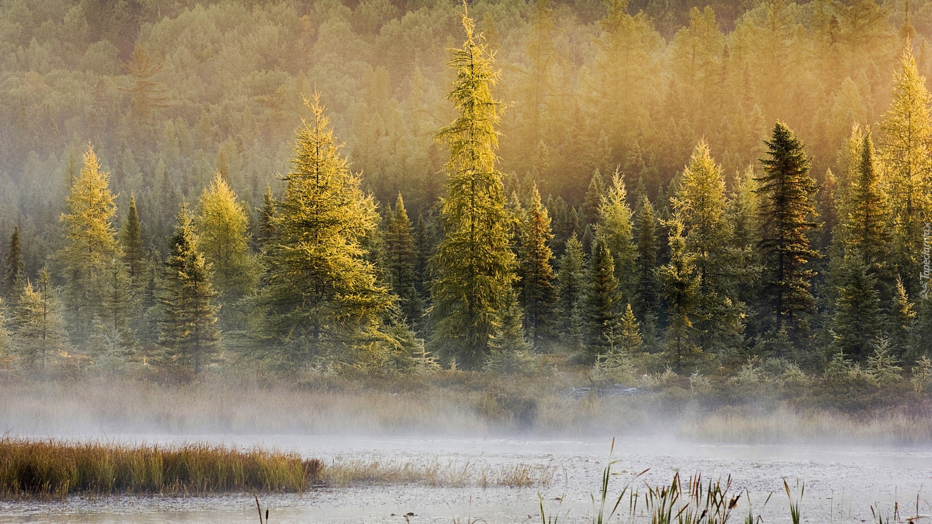 Edytor tapety: Las, Mgła, Jezioro