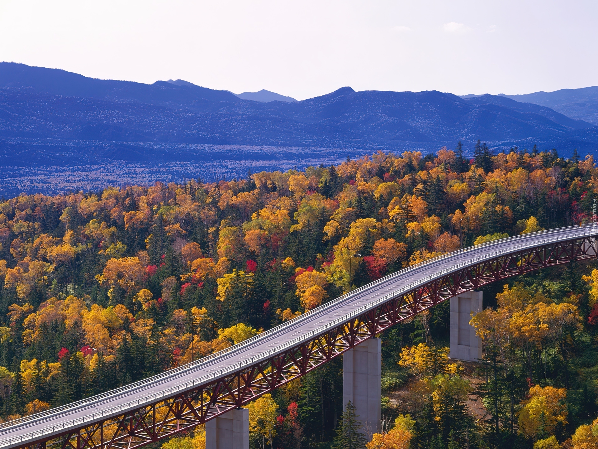 Edytor tapety: Droga, Most, Las, Góry