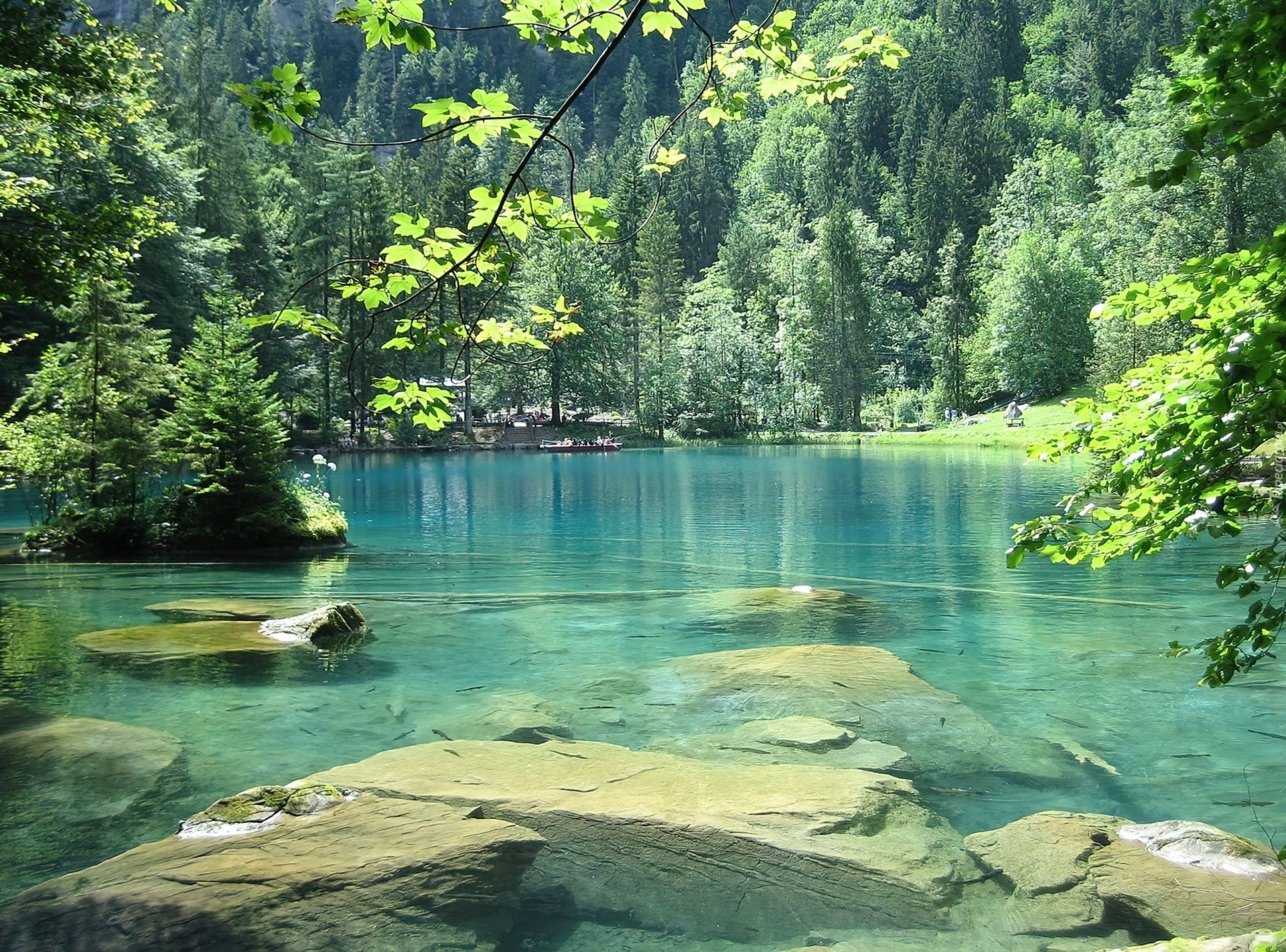 Edytor tapety: Niebieskie, Jezioro, Kamienie, Las, Szwajcaria