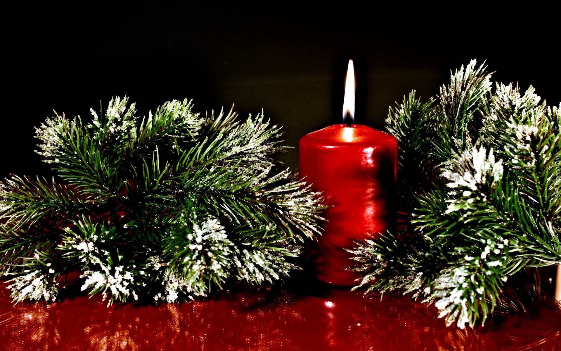 Edytor tapety: Gałązki, Świerku, Czerwona, Świeczka, Stroik, Dekoracja