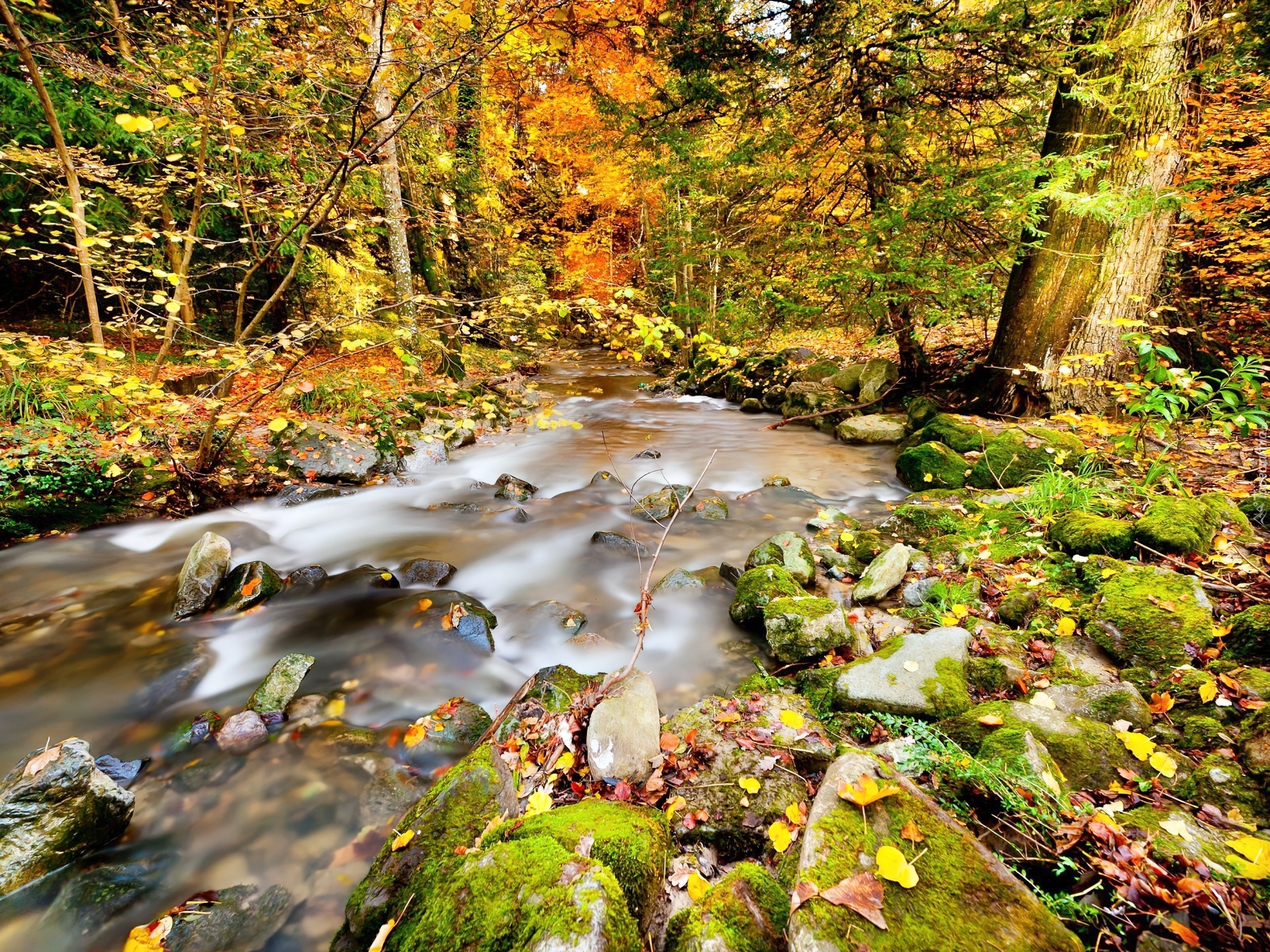 Edytor tapety: Las, Rwący, Potok, Jesień