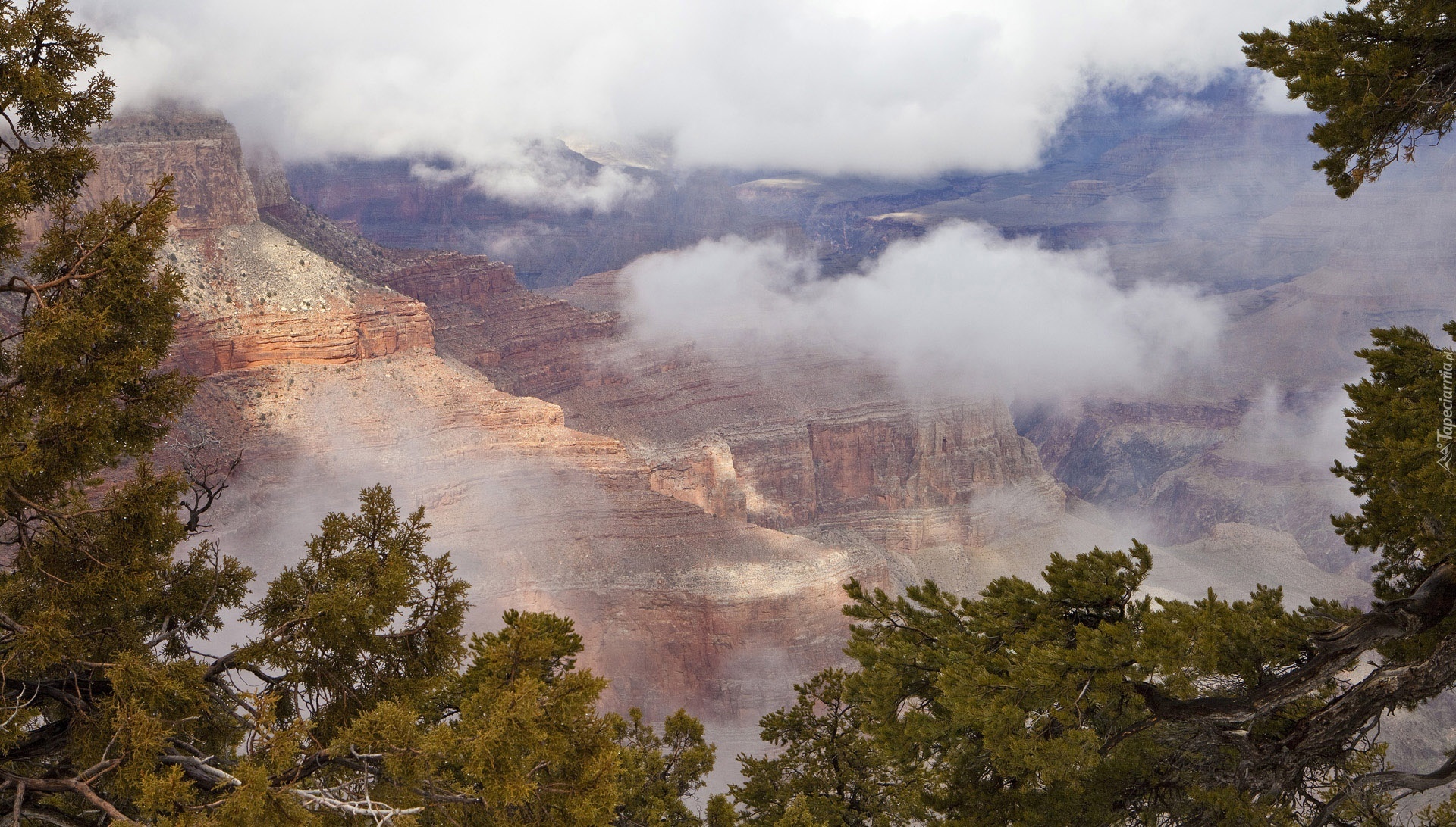 Edytor tapety: Kanion, Chmury, Gałęzie, Drzew