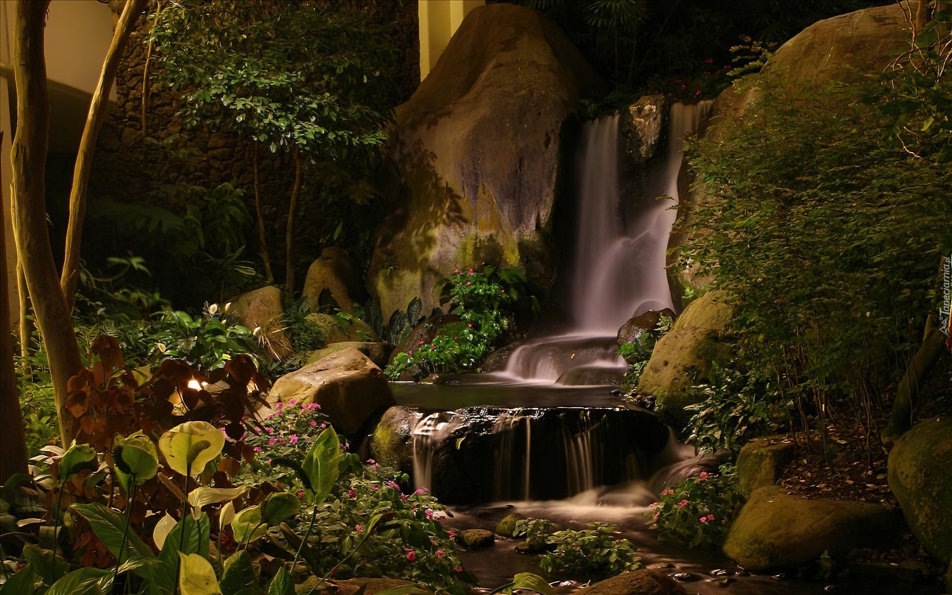 Edytor tapety: Skalniak, Rośliny, Kwiatuszki, Kamienie, Wodospad