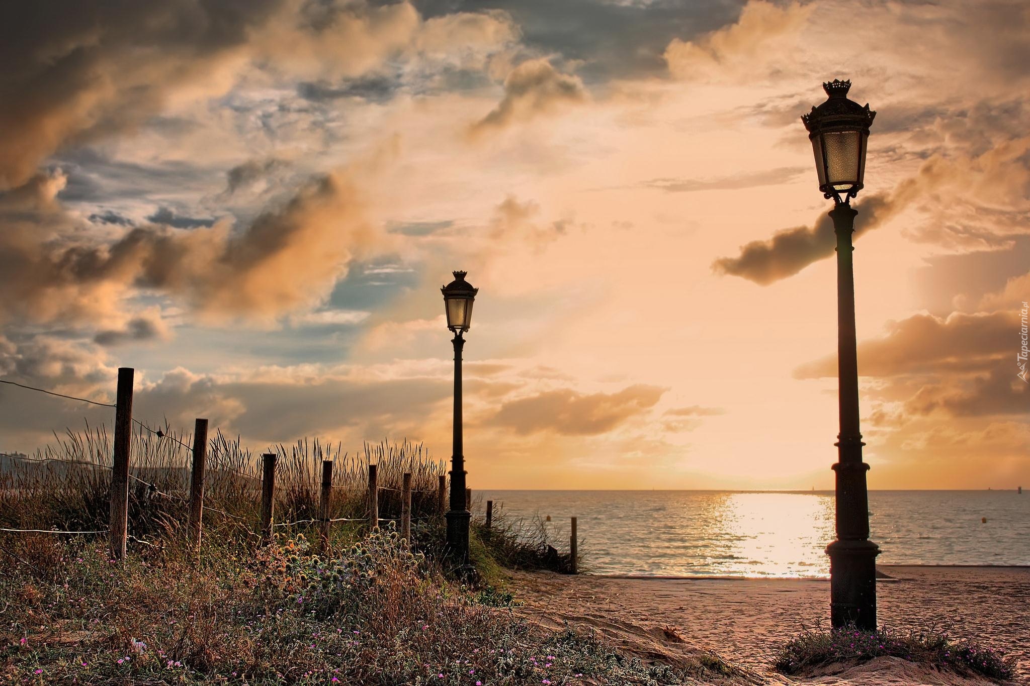 Edytor tapety: Morze, Plaża, Latarnie, Chmury