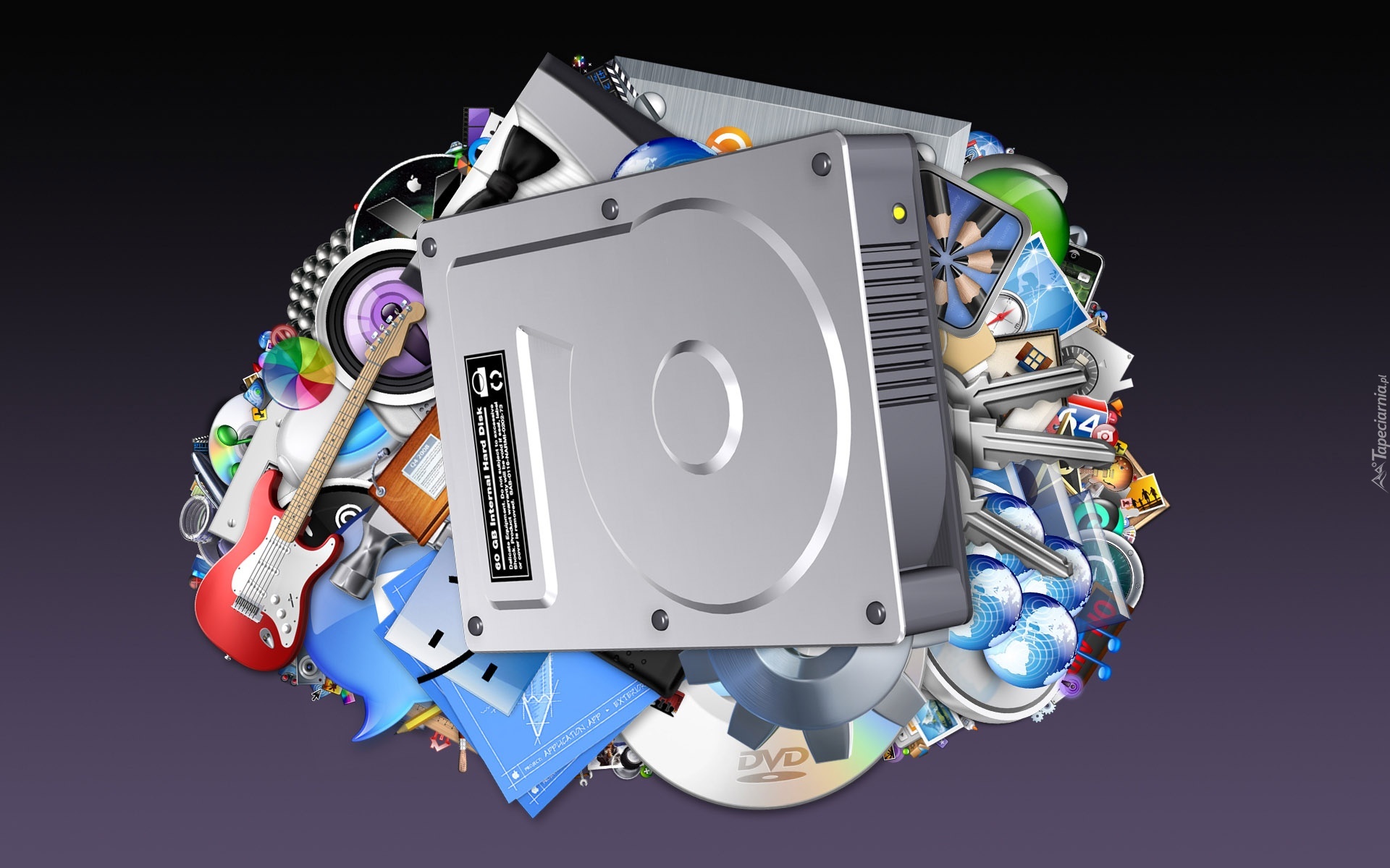 Edytor tapety: Akcesoria, Komputerowe, Muzyczne, Dysk, Gitara