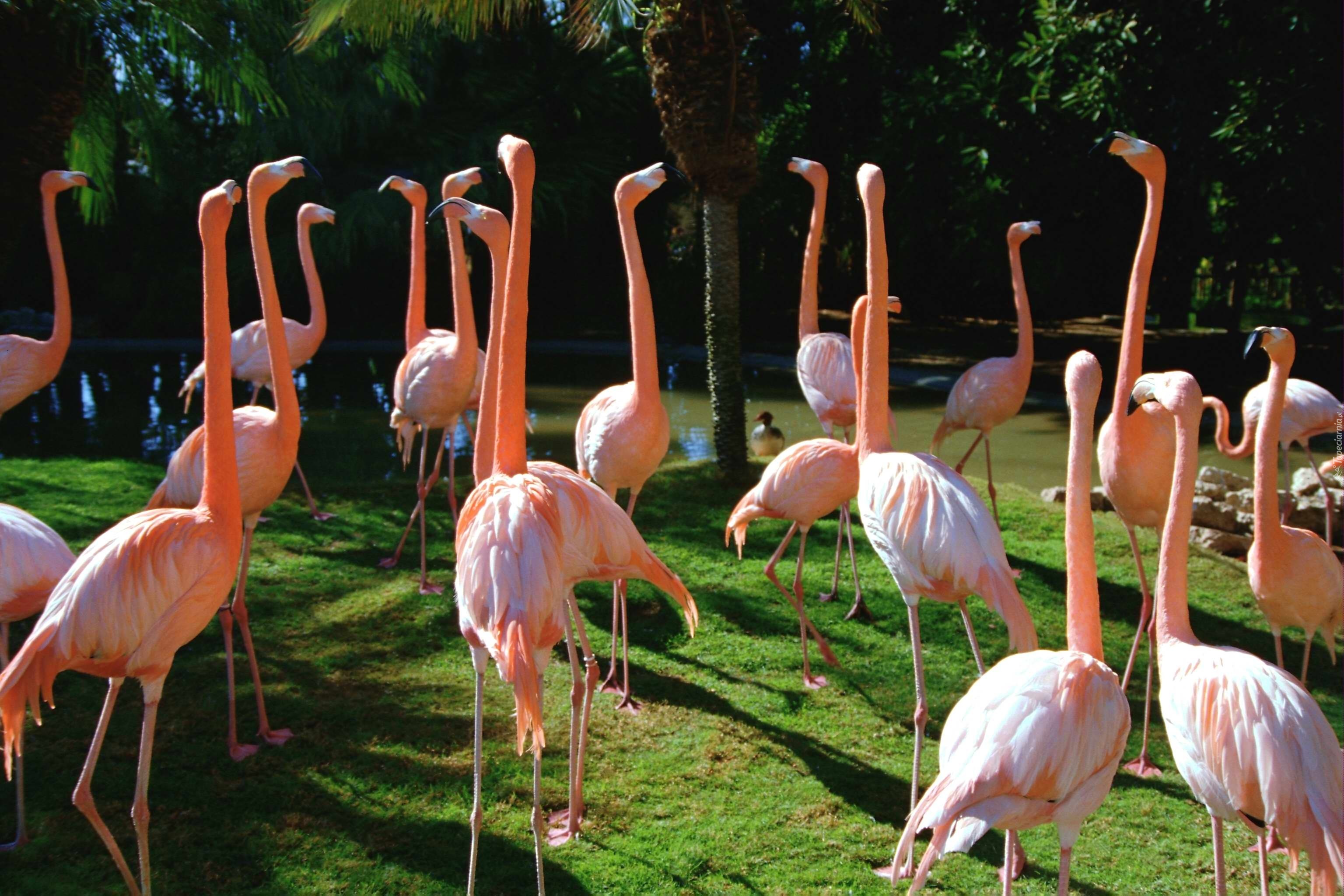 Edytor tapety: Czerwonaki, Flamingi, Różowe, Stado