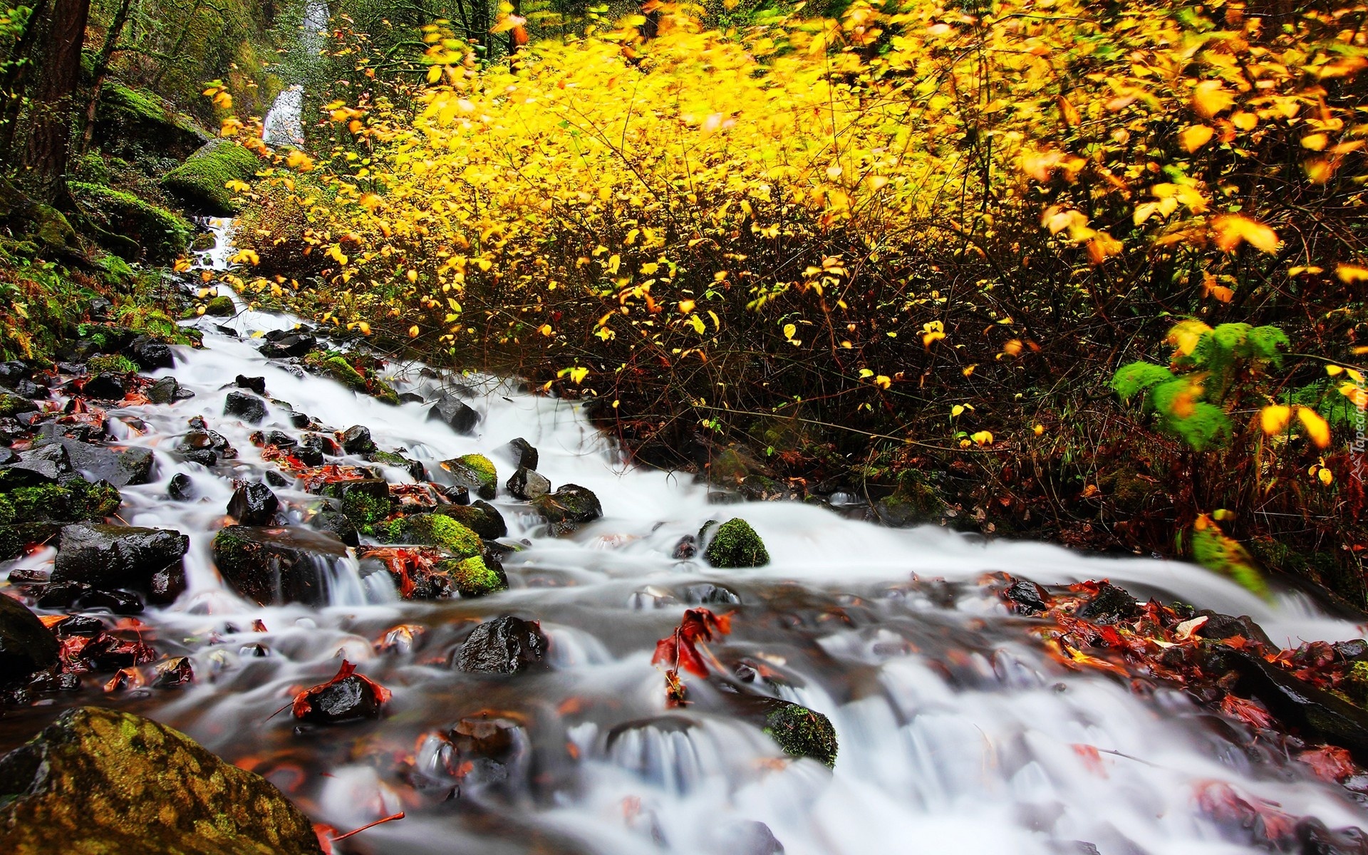 Edytor tapety: Jesień, Las, Rwący, Potok, Kamienie