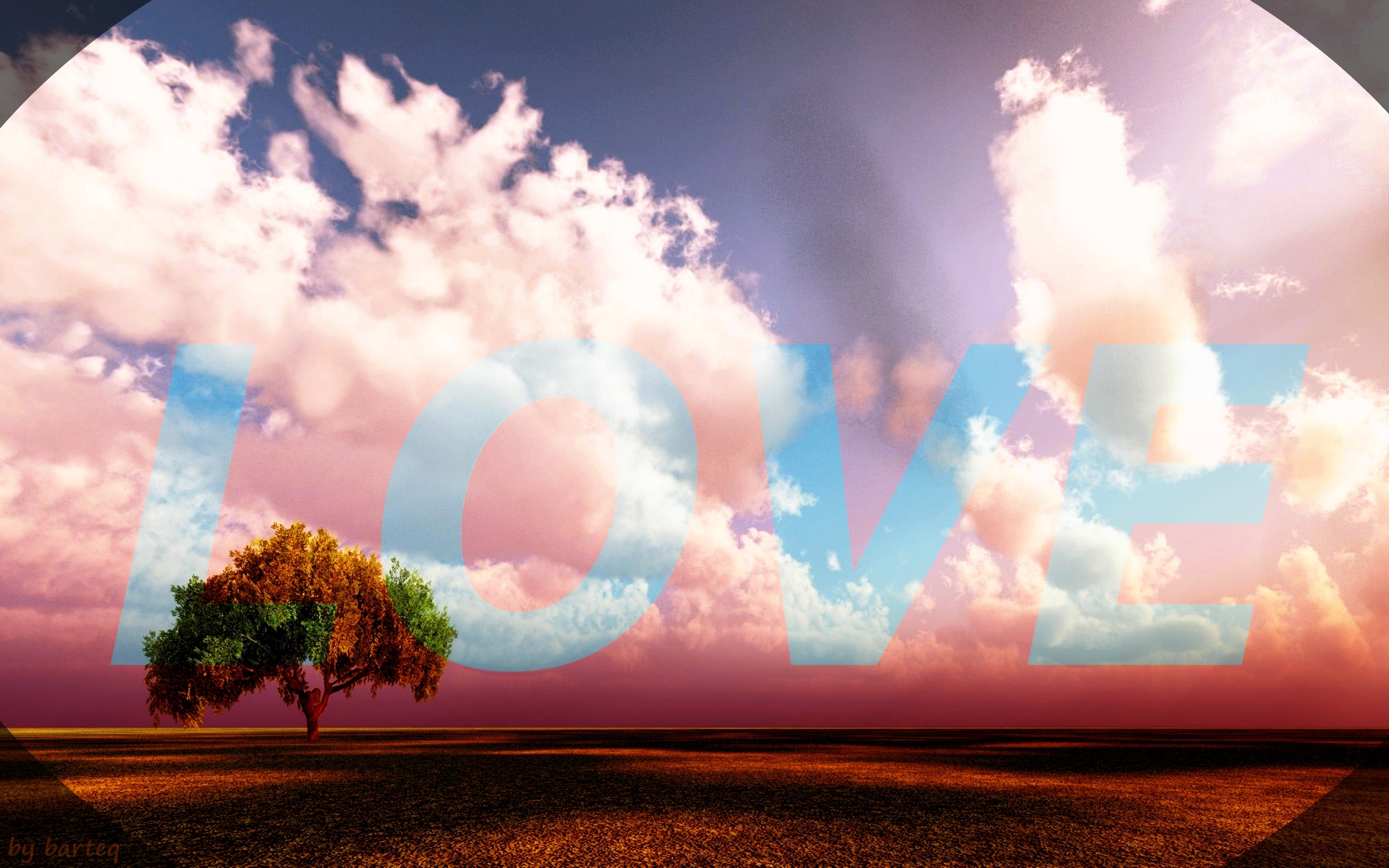 Edytor tapety: Samotne, Drzewo, Napis, Love