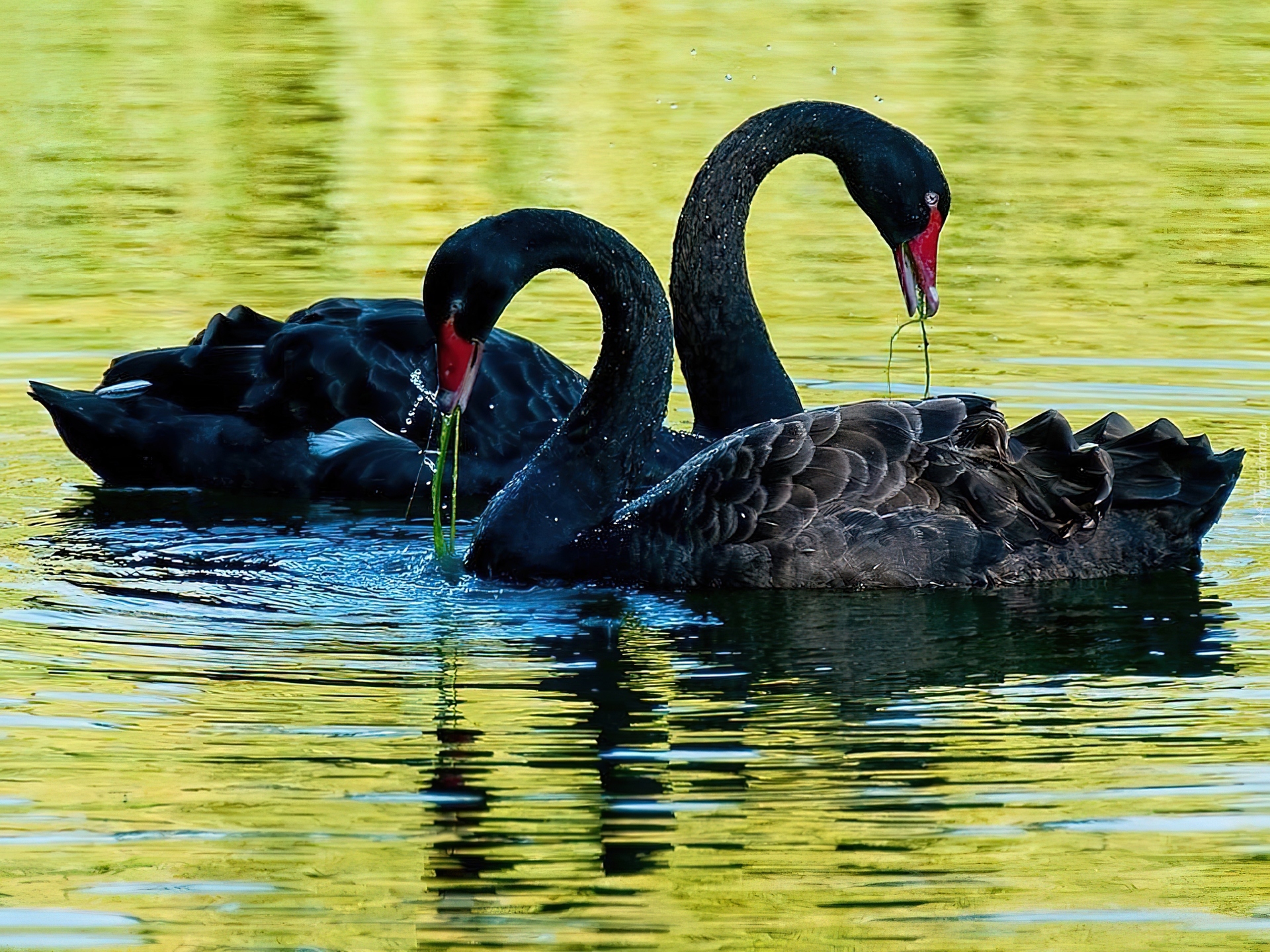 Edytor tapety: Dwa, Czarne, Łabędzie, Jezioro