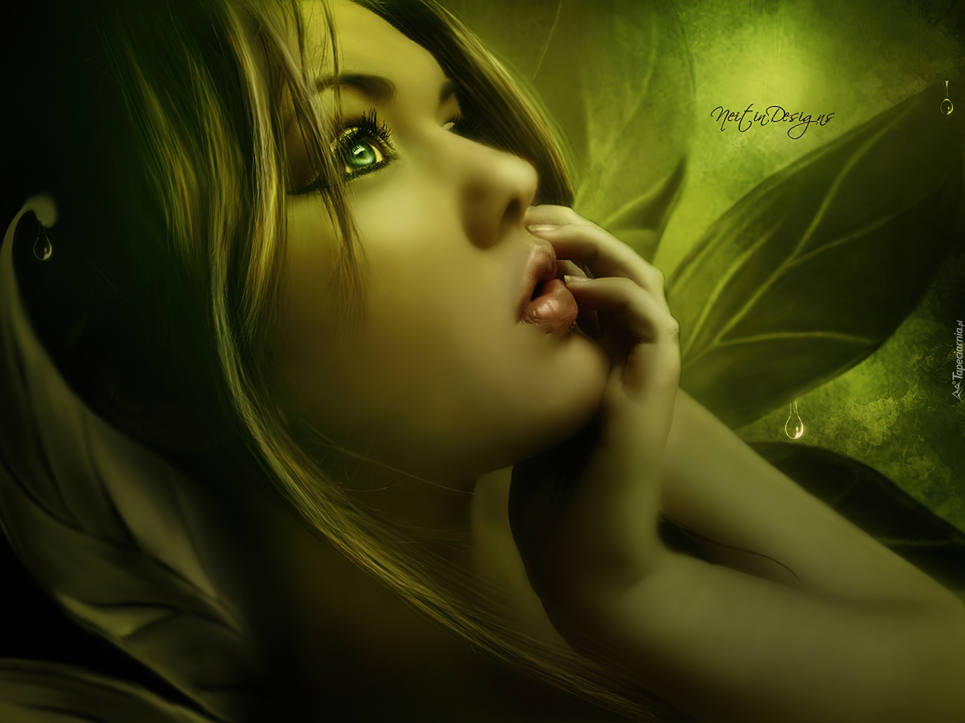 Edytor tapety: Dziewczyna, Zielone, Oczy, Ręka