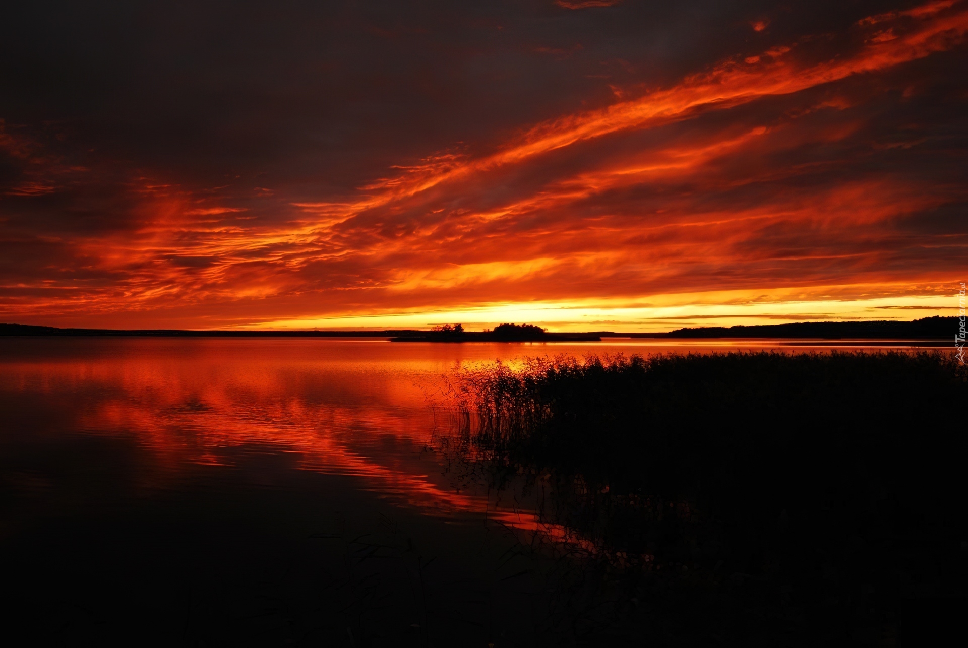 Edytor tapety: Zachód Słońca, Jezioro