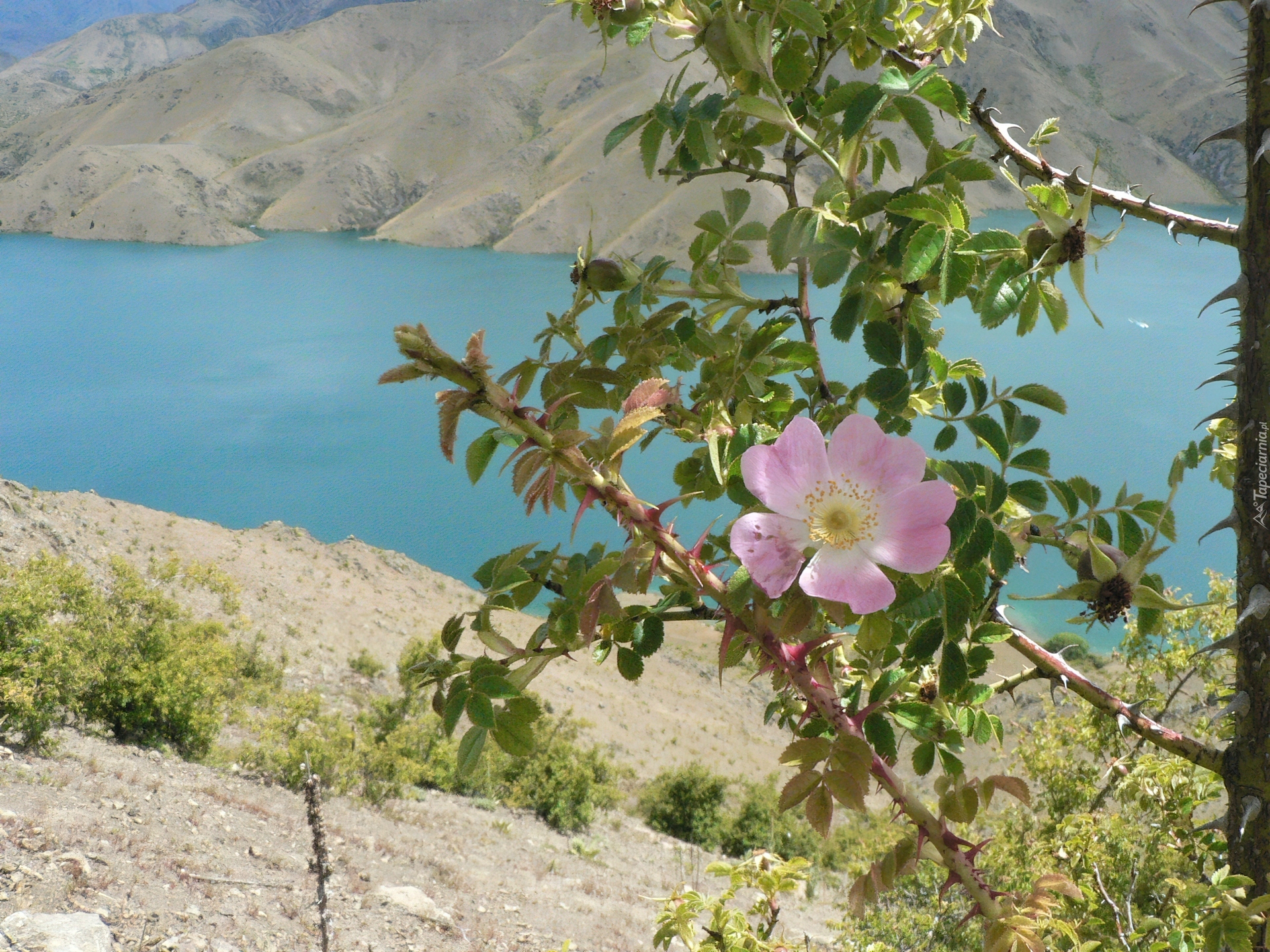 Edytor tapety: Jezioro, Kwitnące, Gałązki, Benmore, Nowa Zelandia