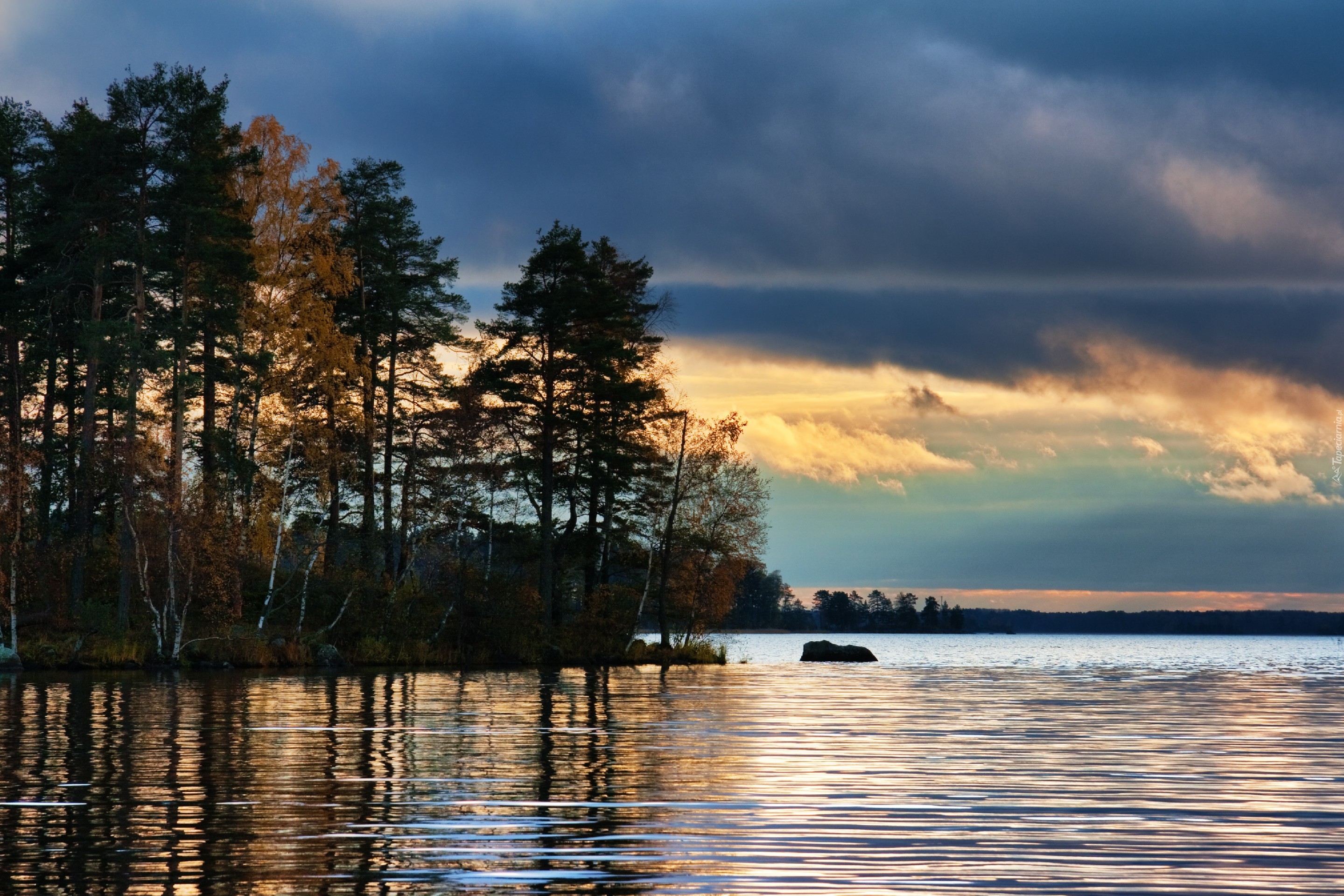 Edytor tapety: Jezioro, Drzewa, Chmury