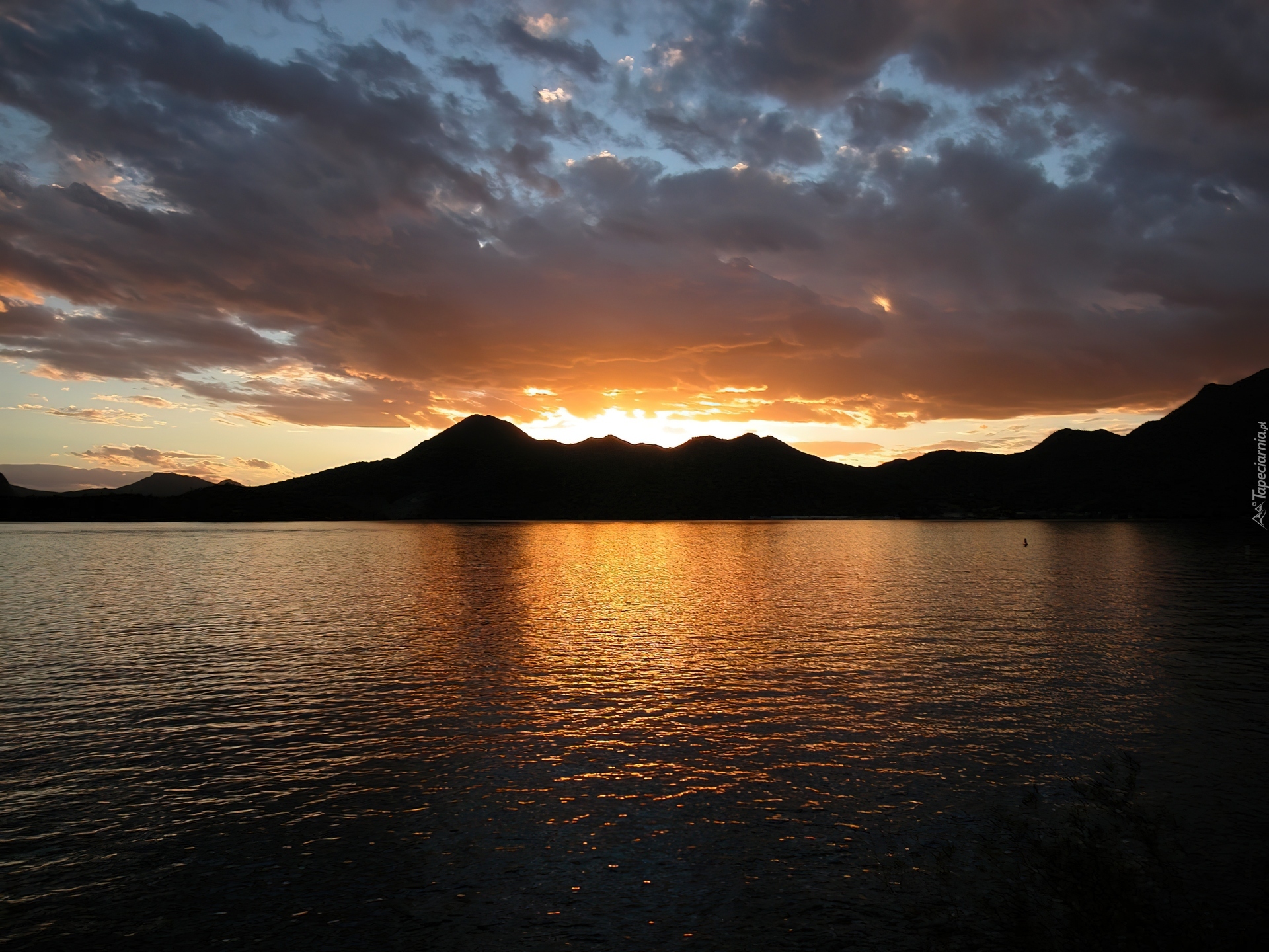 Edytor tapety: Zachód Słońca, Jezioro, Góry