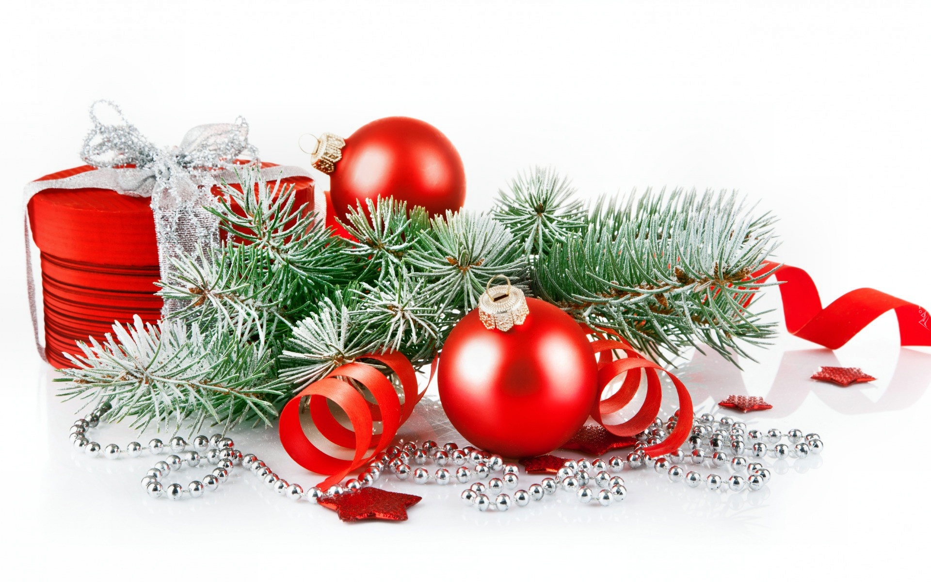 Edytor tapety: Święta, Prezent, Bombki, Gałązka, Świerku