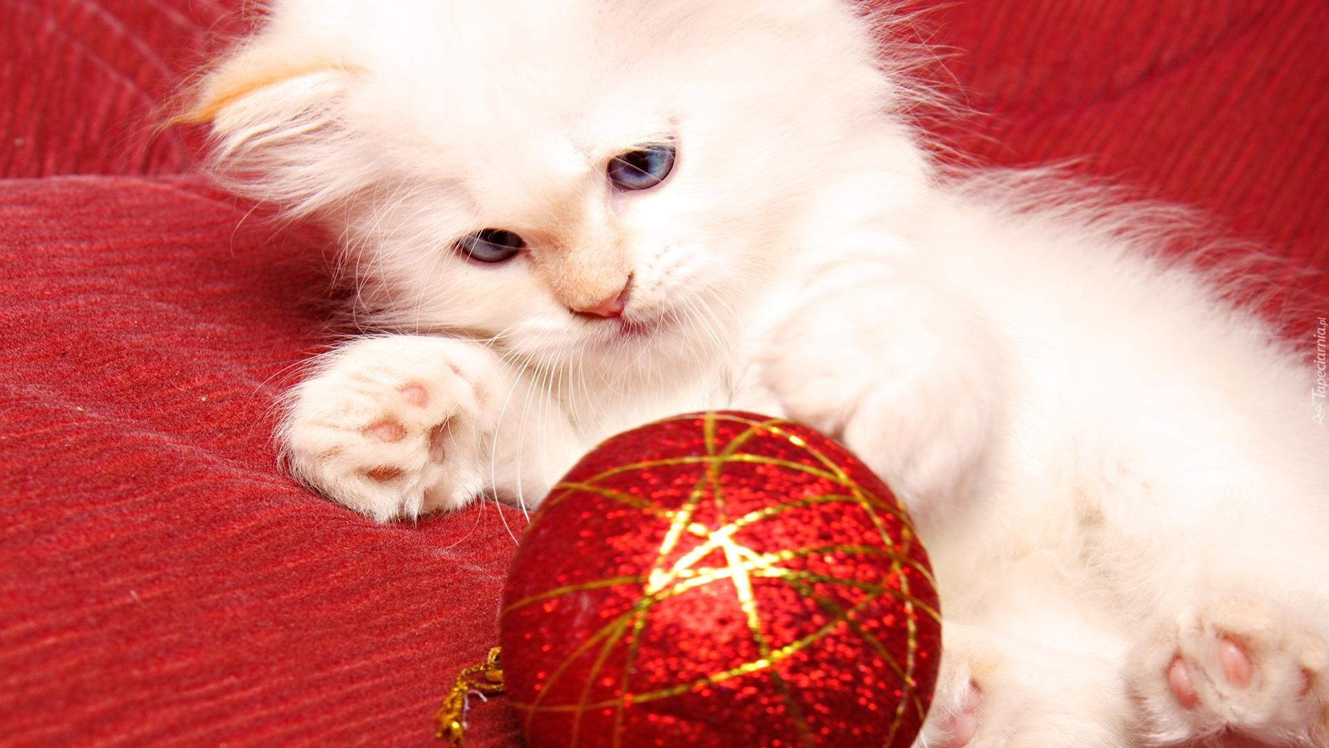 Edytor tapety: Mały, Biały, Kotek, Bombka, Święta