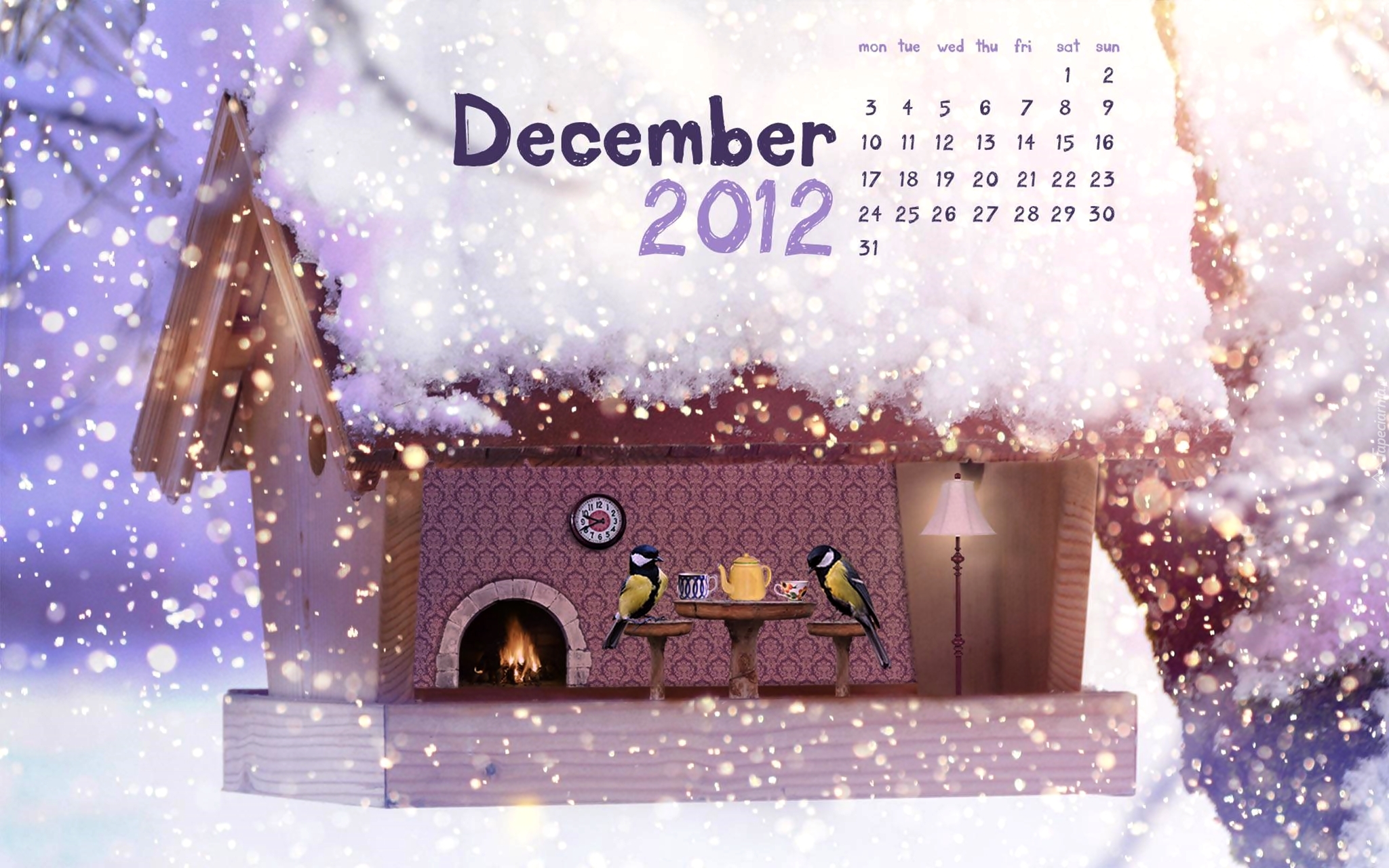 Edytor tapety: Karmnik, Śnieg, Kalendarz