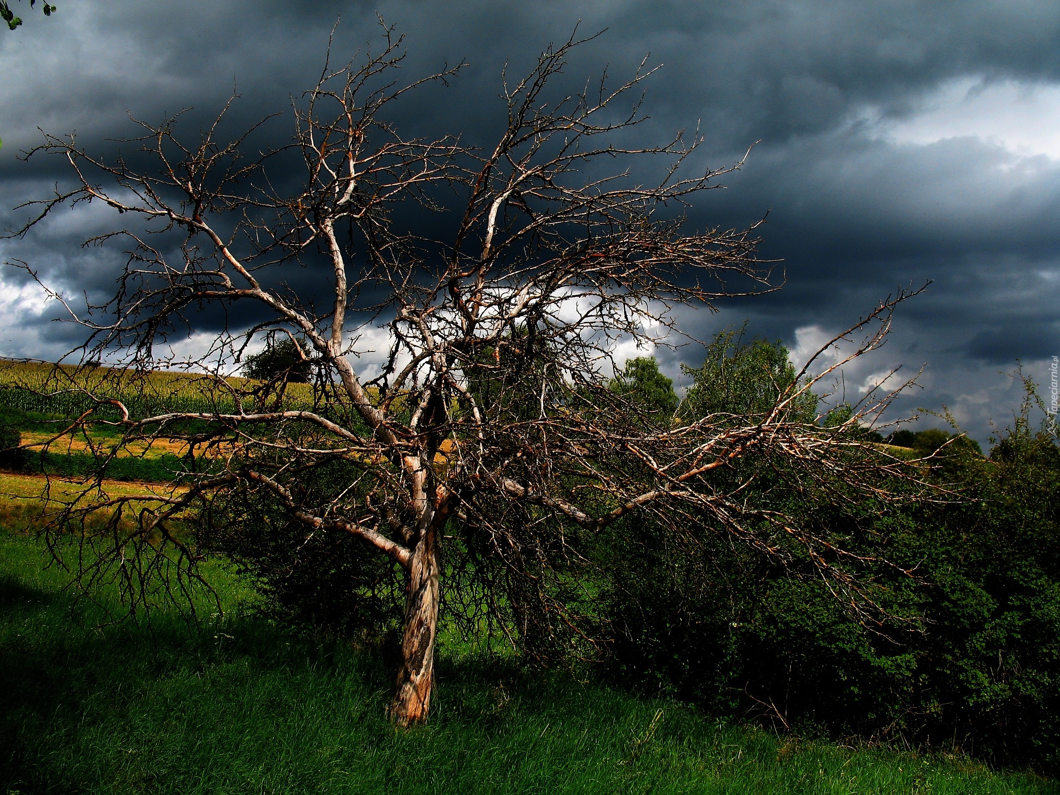 Edytor tapety: Burzowe, Chmury, Polle, Suche, Drzewo