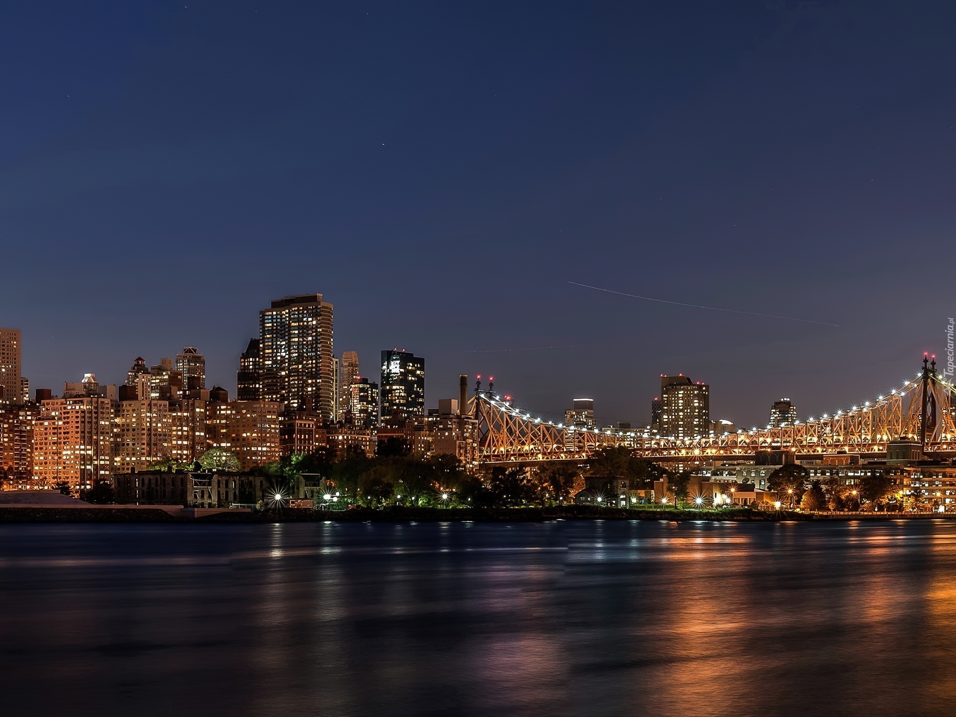 Edytor tapety: Rzeka, Miasto, Nocą, Nowy Jork