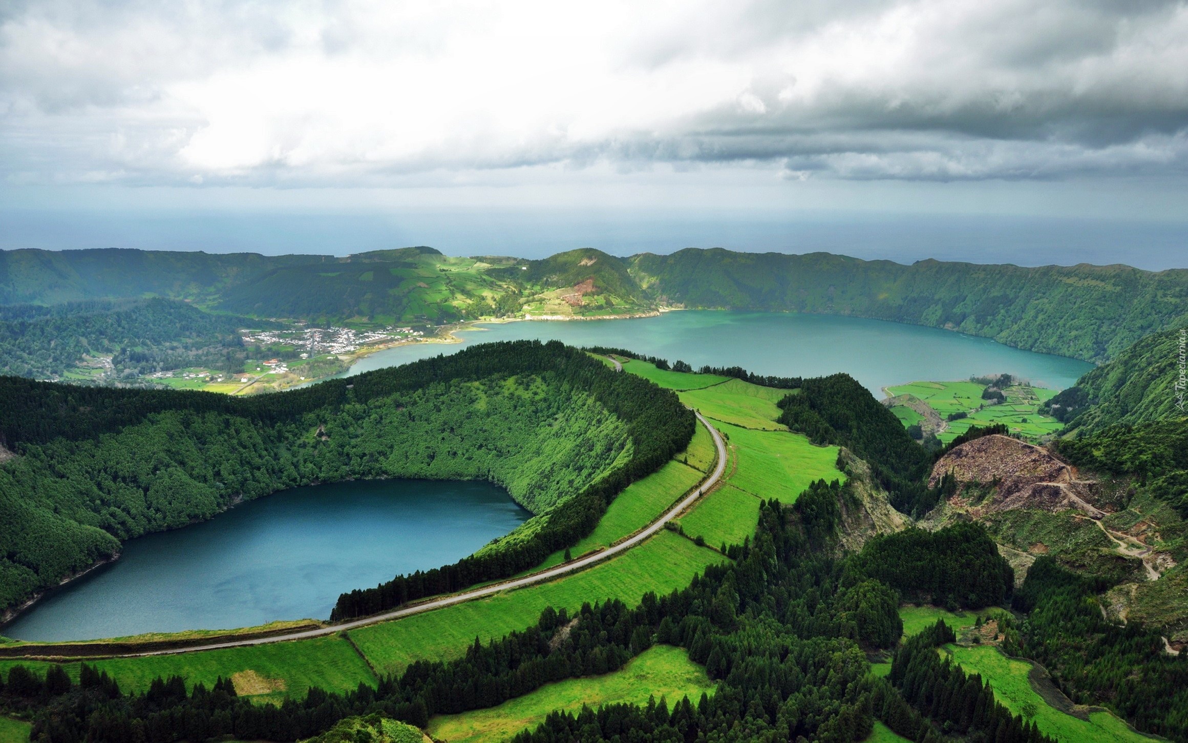 Edytor tapety: Portugalia, Azory, Sao Miguel, Góry, Jeziora, Lagoa do Canario