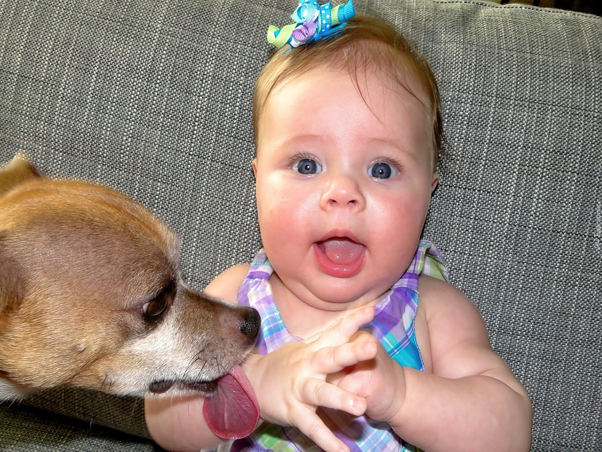 Edytor tapety: Malutka, Dziewczynka, Piesek, Głowa, Język
