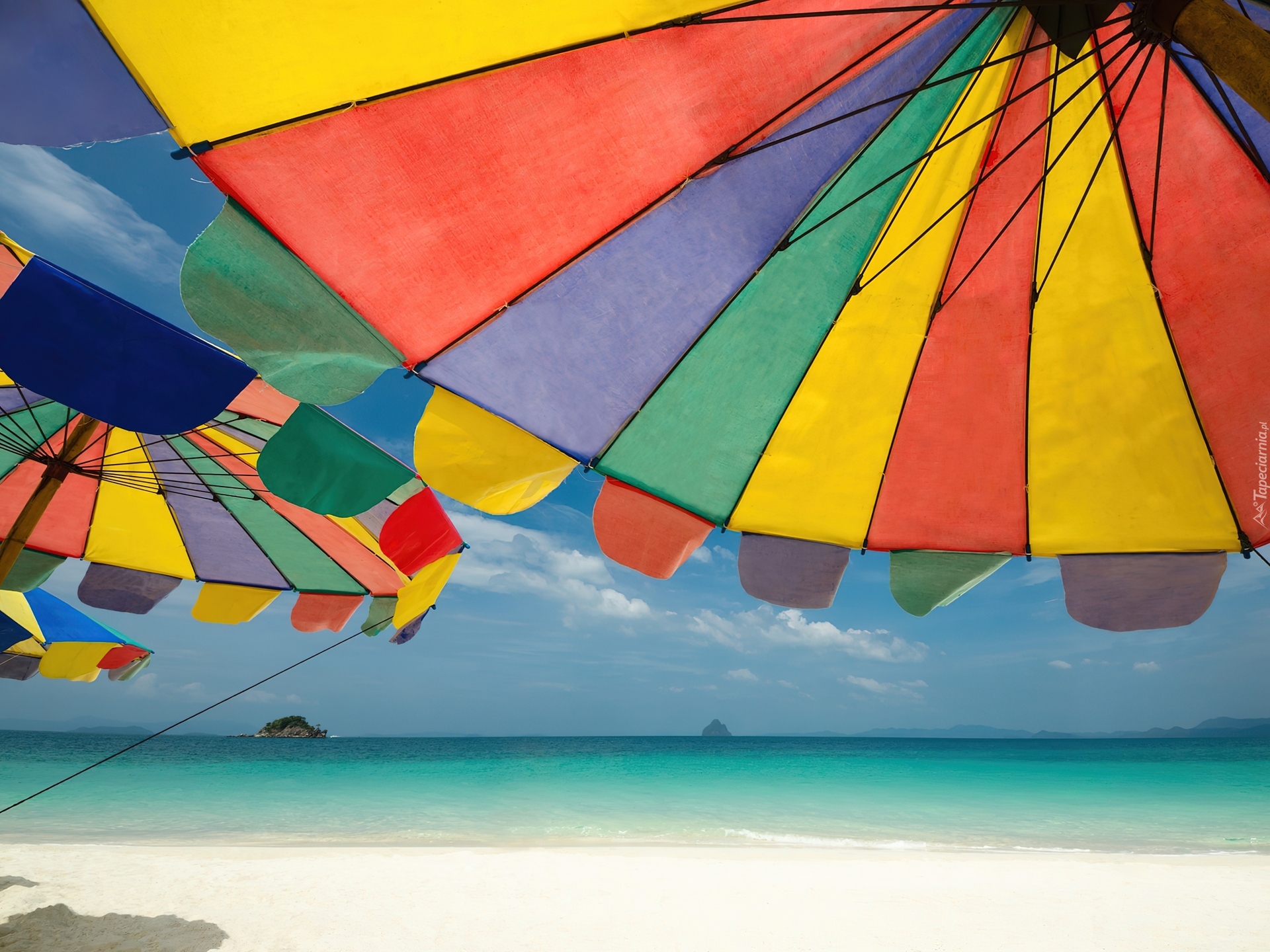 Edytor tapety: Plaża, Morze, Parasole, Phuket, Island, Tajlandia