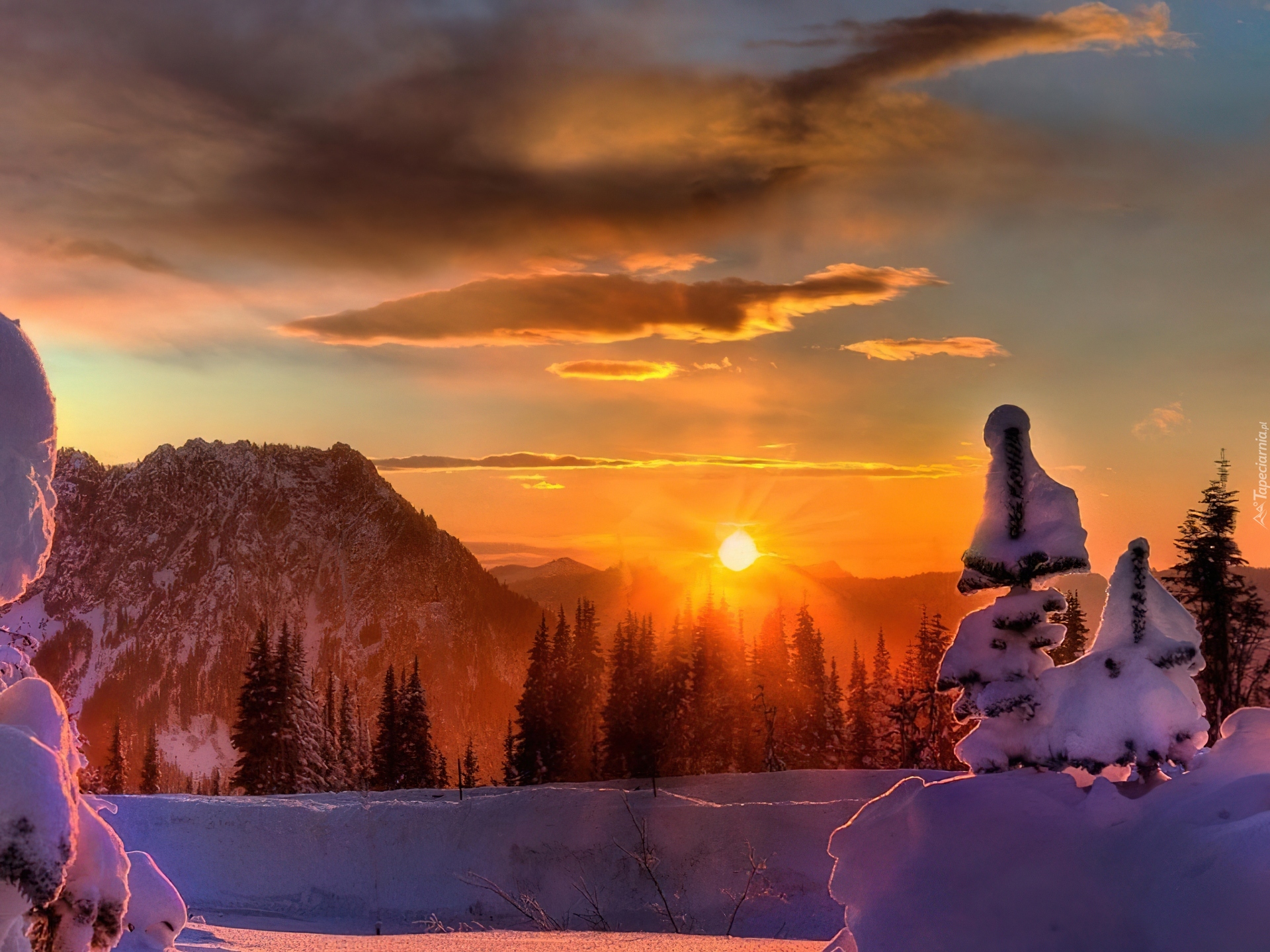 Edytor tapety: Zima, Zachód Słońca