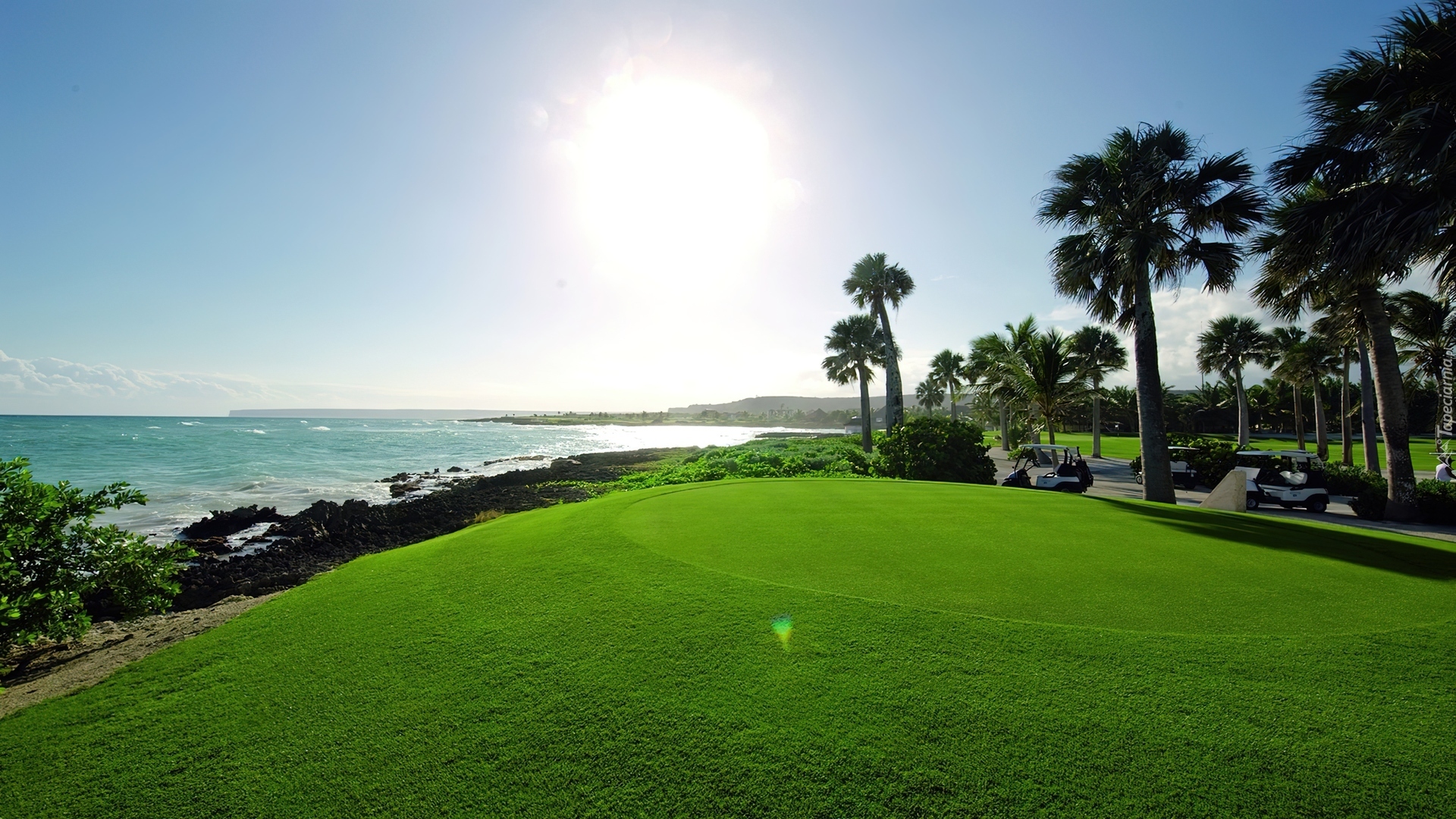 Edytor tapety: Trawa, Słońce, Morze, Lato, Palmy