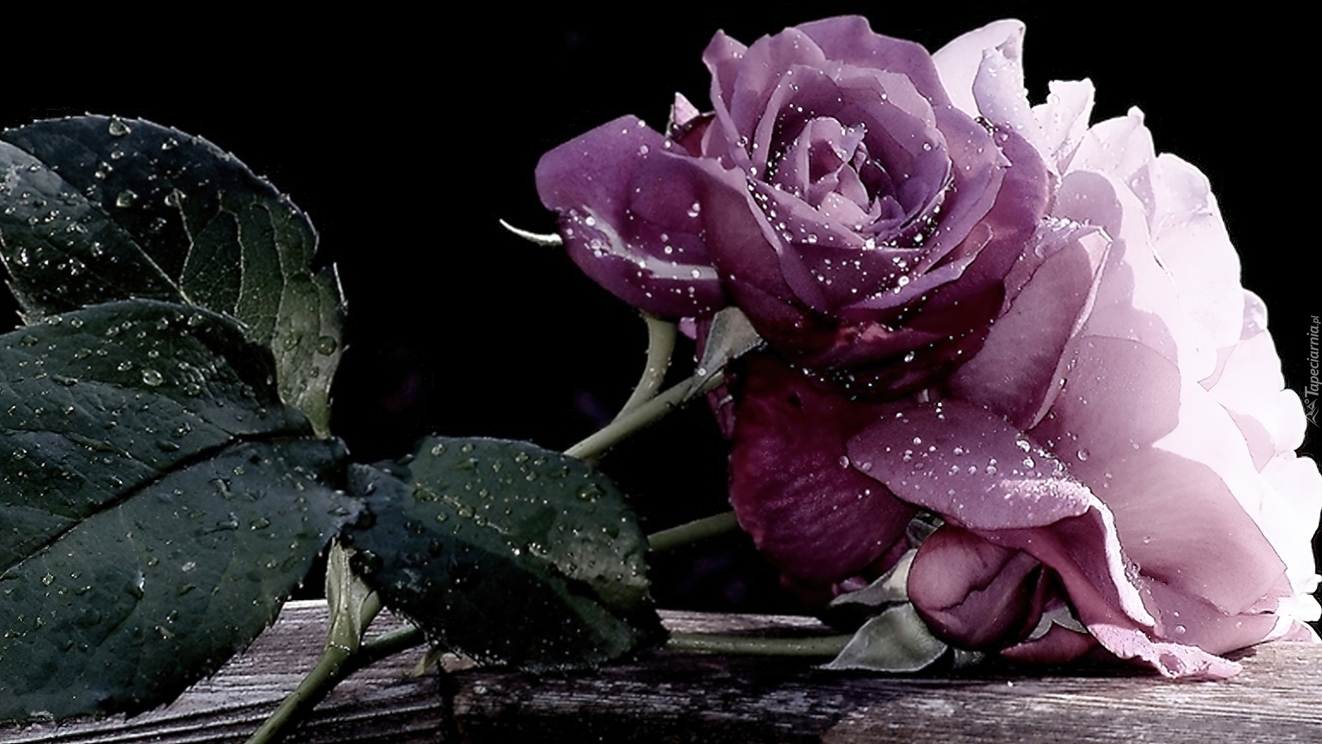 Edytor tapety: Kwiaty, Fioletowe, Róże, Krople, Rosy