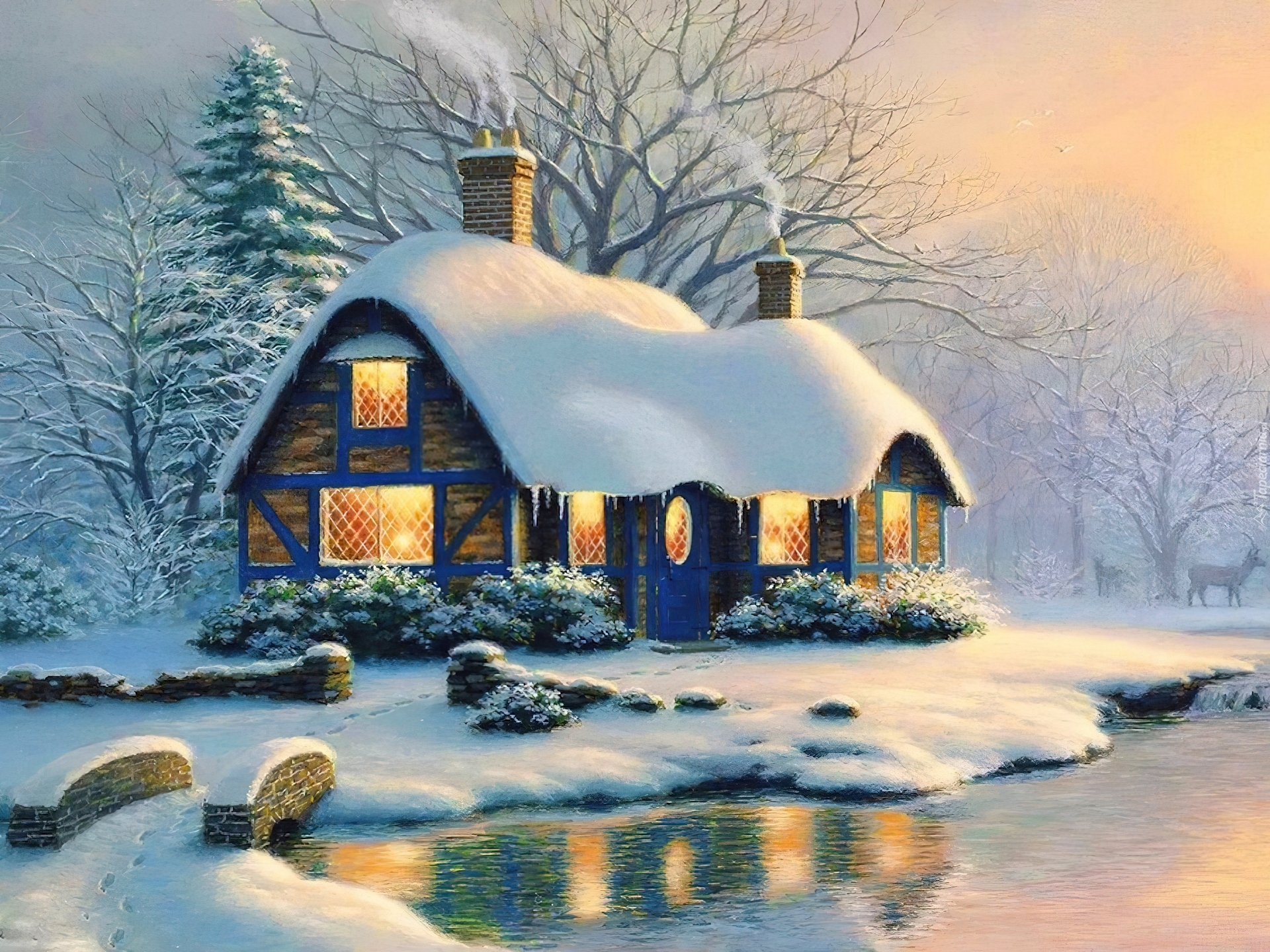 Edytor tapety: Dom, Zima, Malarstwo