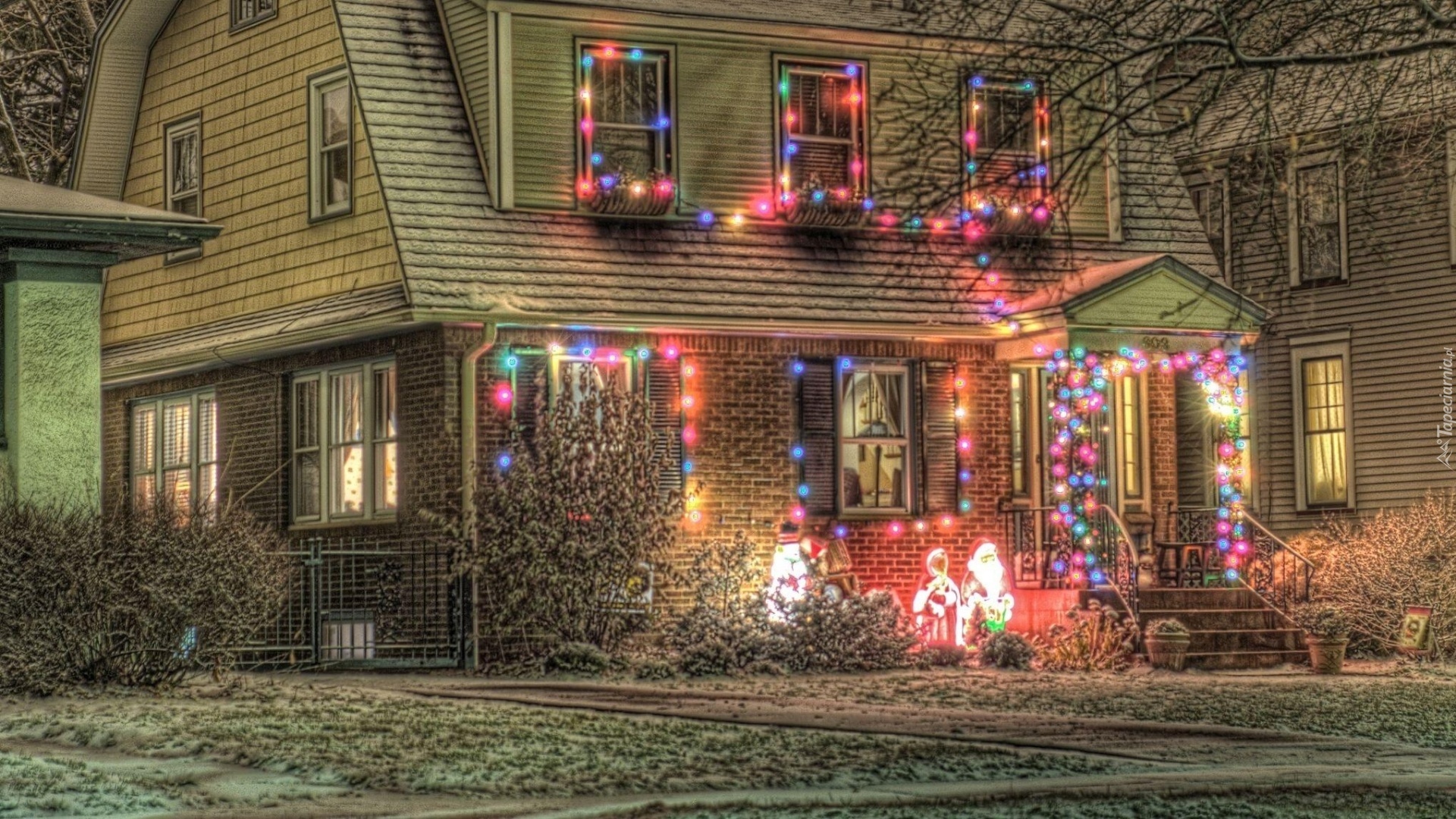Edytor tapety: Oświetlony, Domek, Zima, Boże, Narodzenie