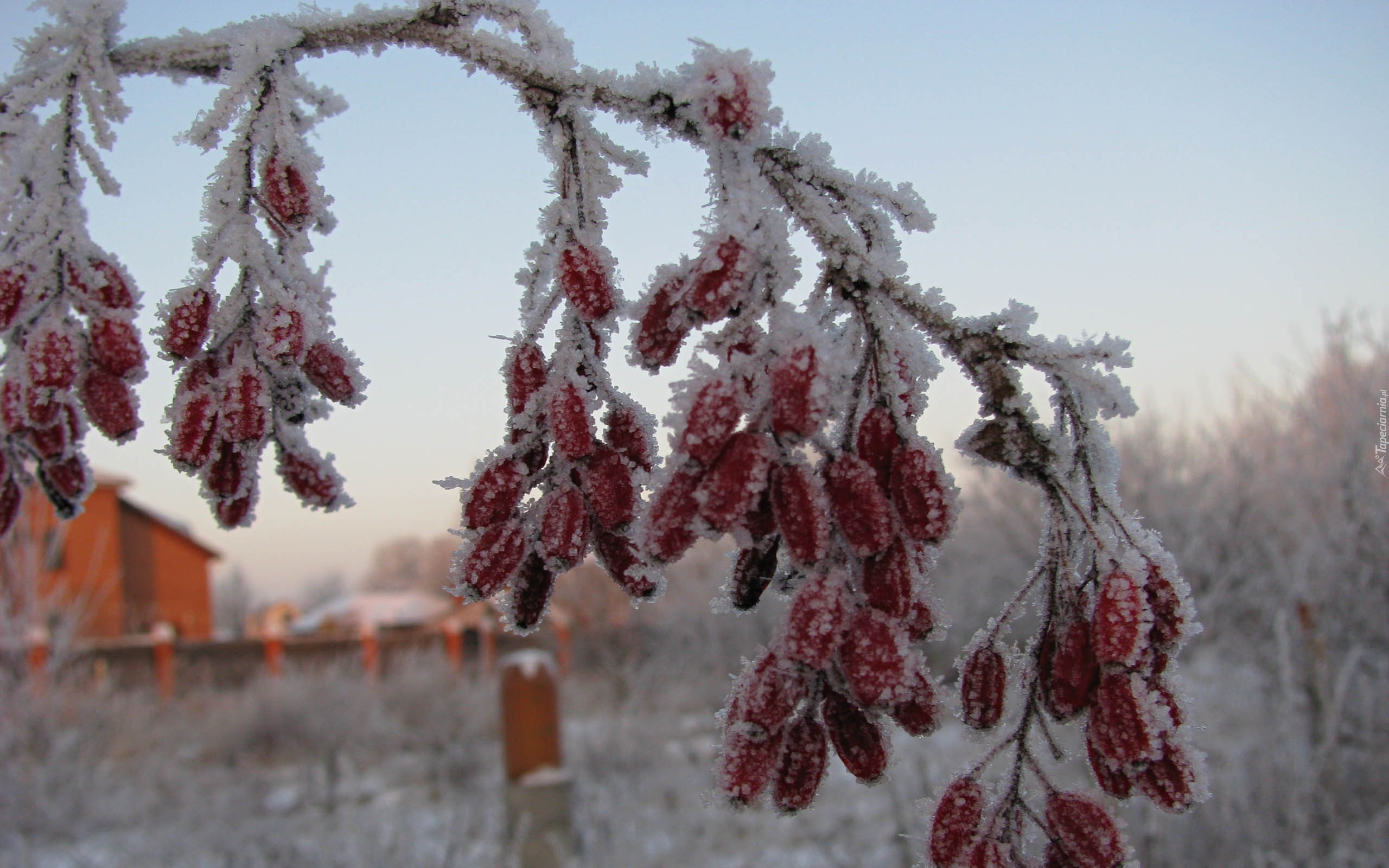 Edytor tapety: Zamrożona, Roślina, Gałązka, Czerwone, Owoce
