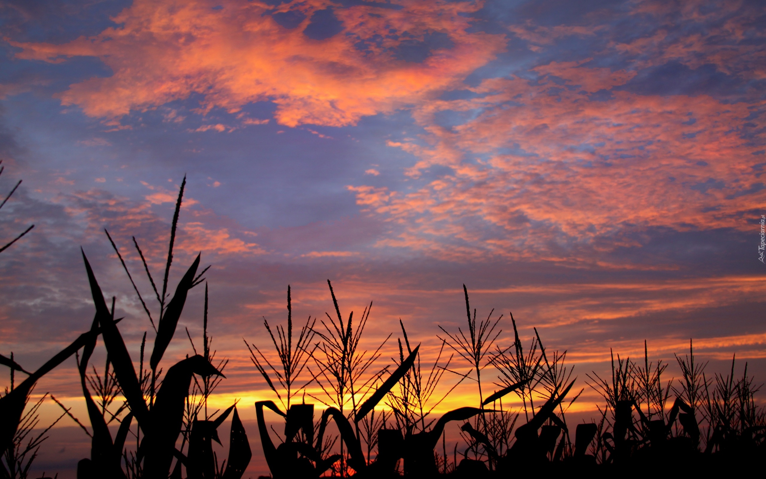 Edytor tapety: Zachód, Słońca, Chmury, Rośliny