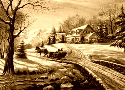 Edytor tapety: Zimowy, Widoczek, Zima, Malarstwo
