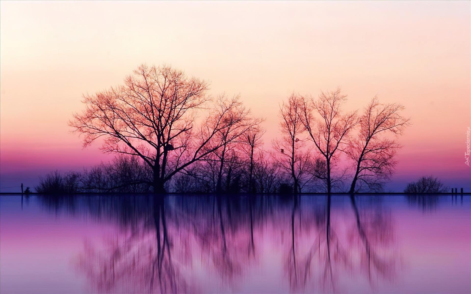 Edytor tapety: Jezioro, Drzewa, Krzewy