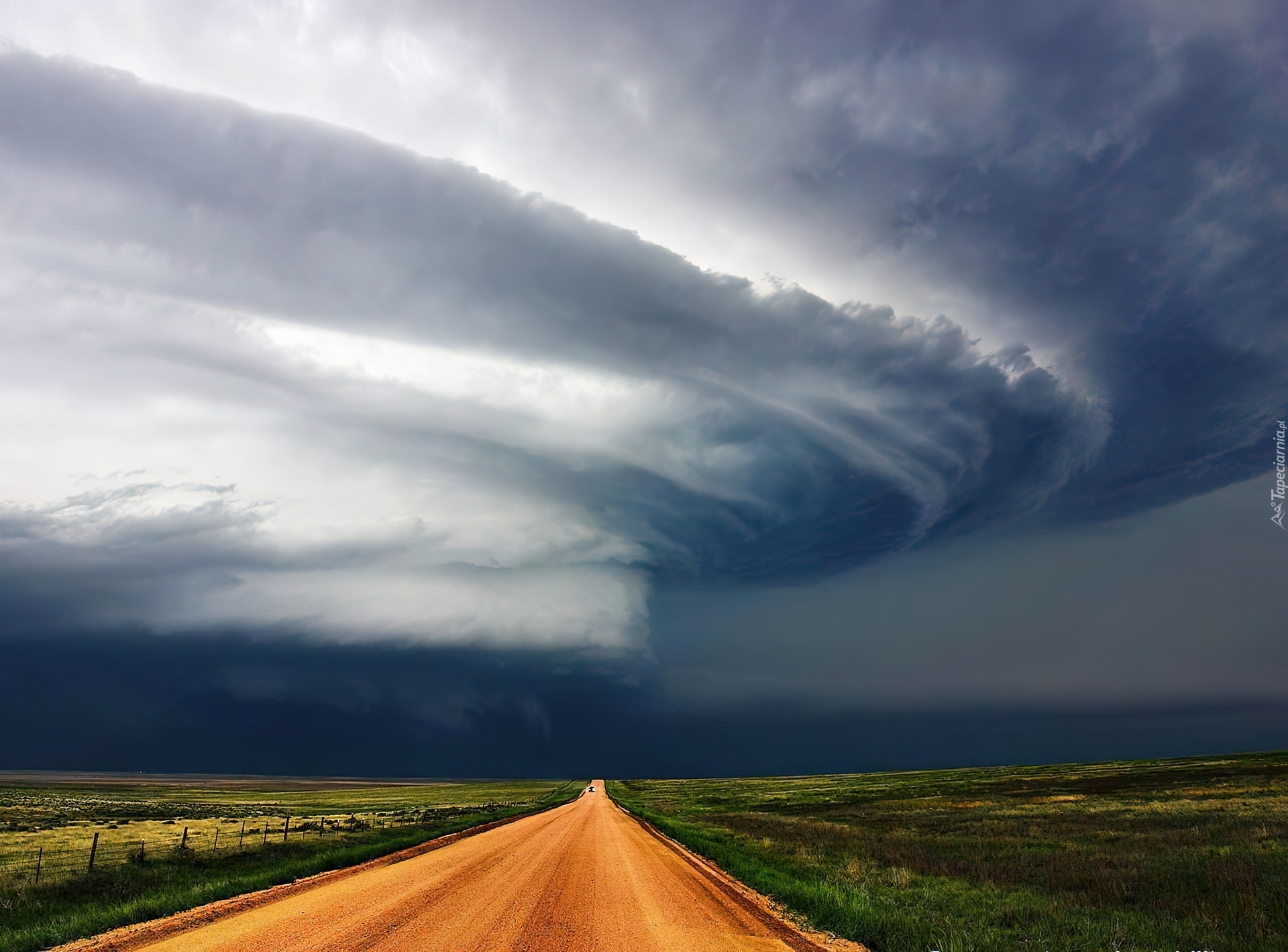 Edytor tapety: Droga, Łąki, Tornado