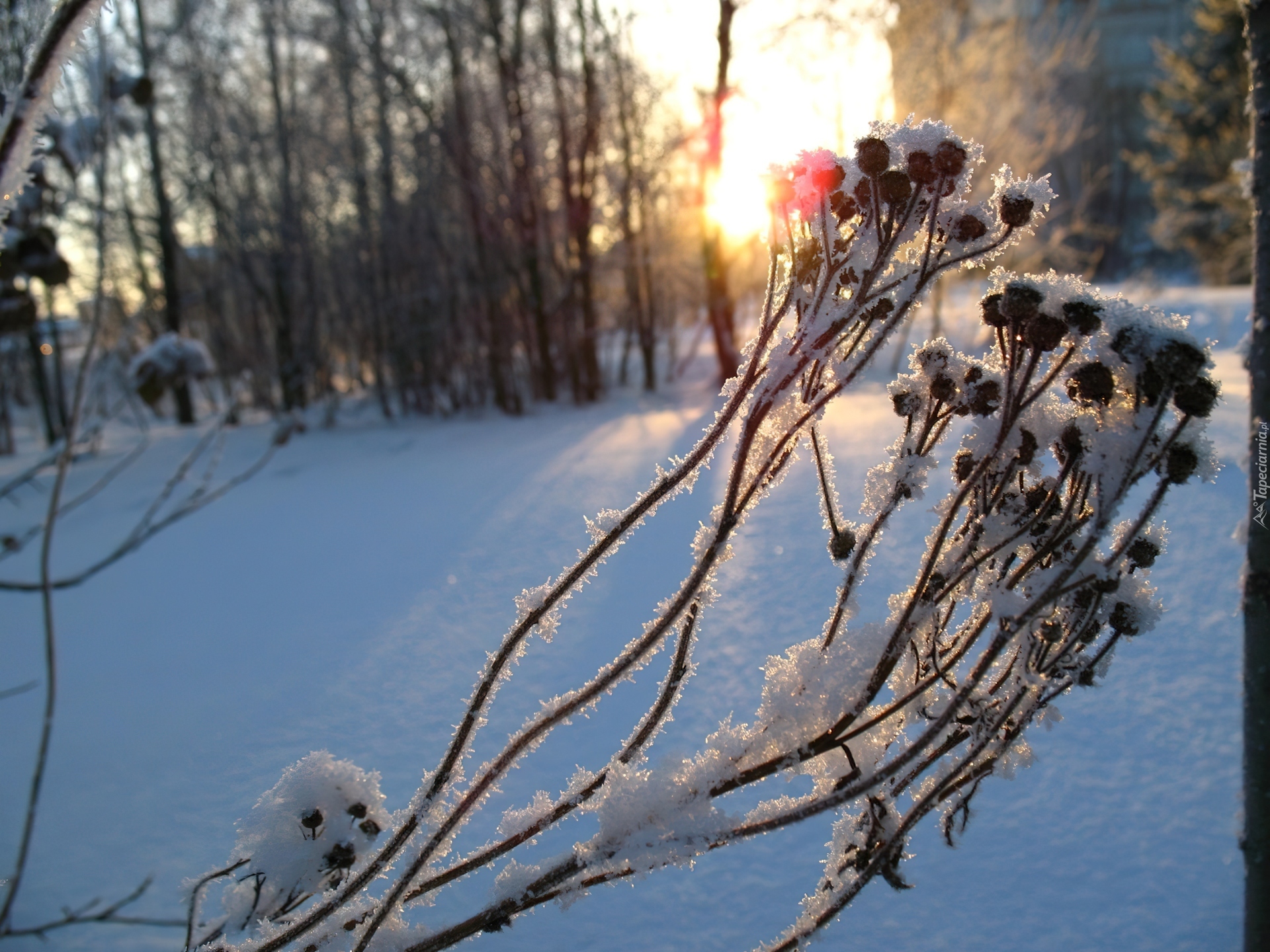 Edytor tapety: Zamrożona, Roślina, Łodyżki, Owoce, Las, Śnieg
