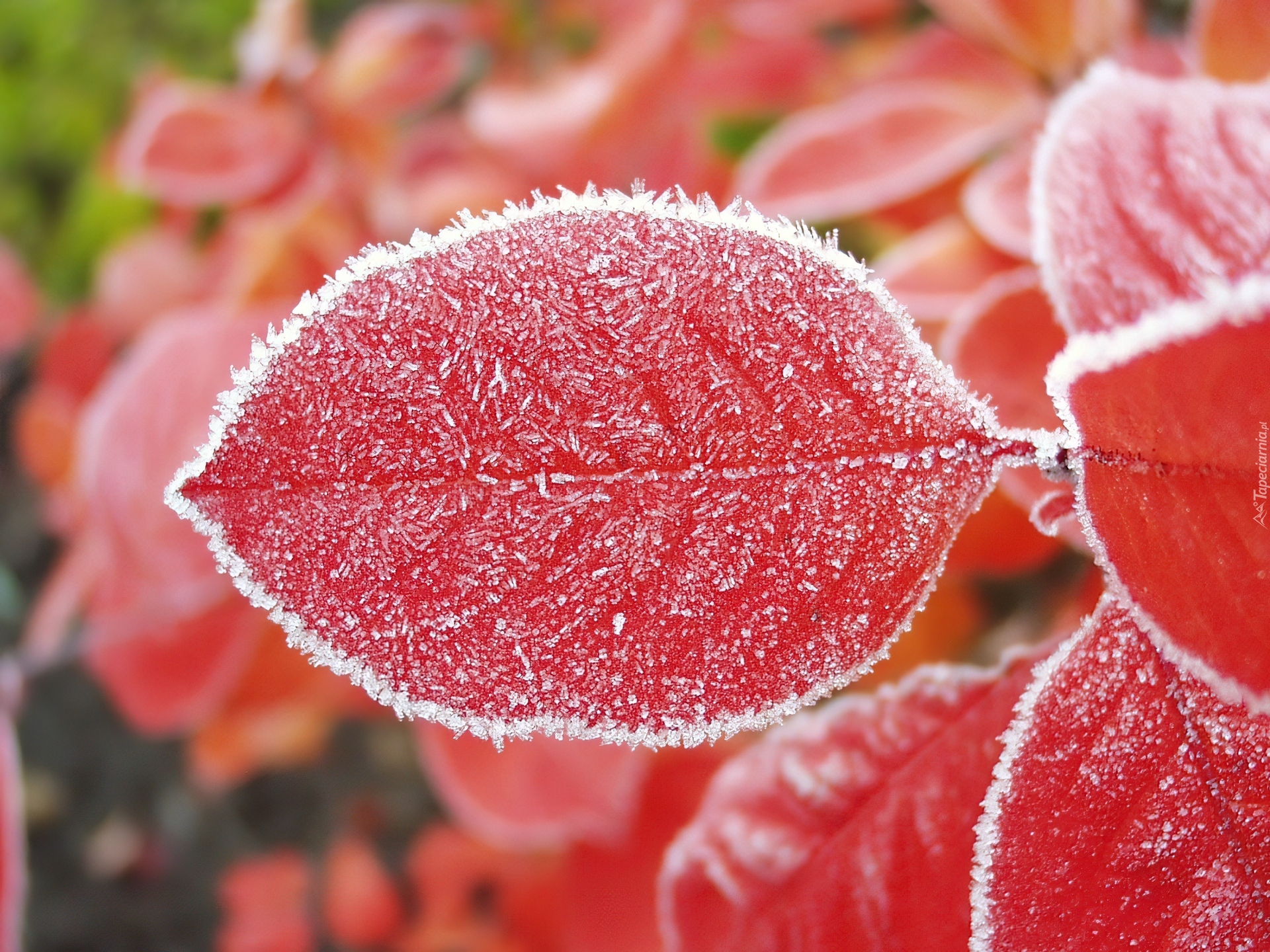 Edytor tapety: Zamrożona, Roślina, Czerwone, Liście