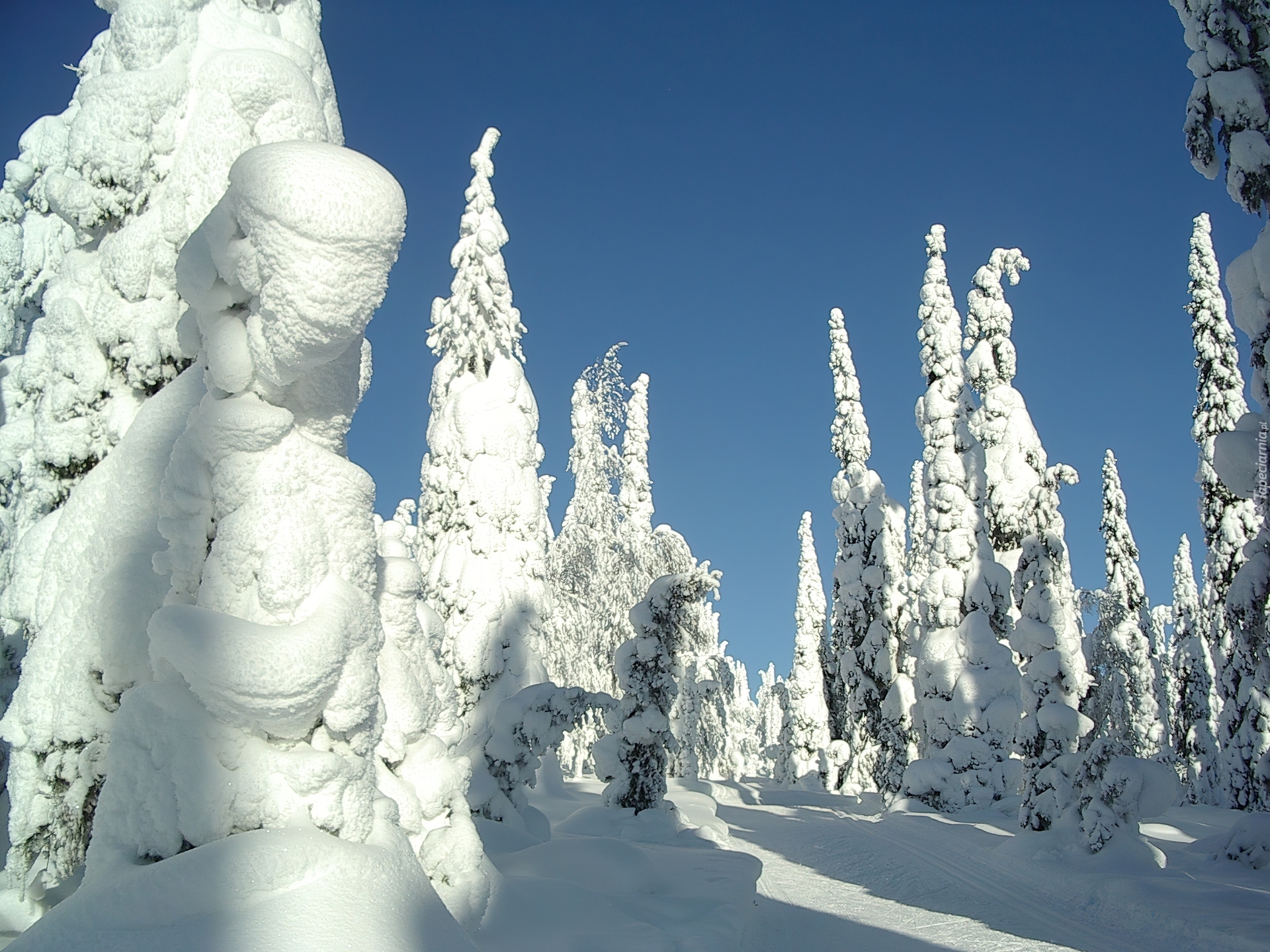 Edytor tapety: Zima, Ośnieżone, Drzewa, Bałwan