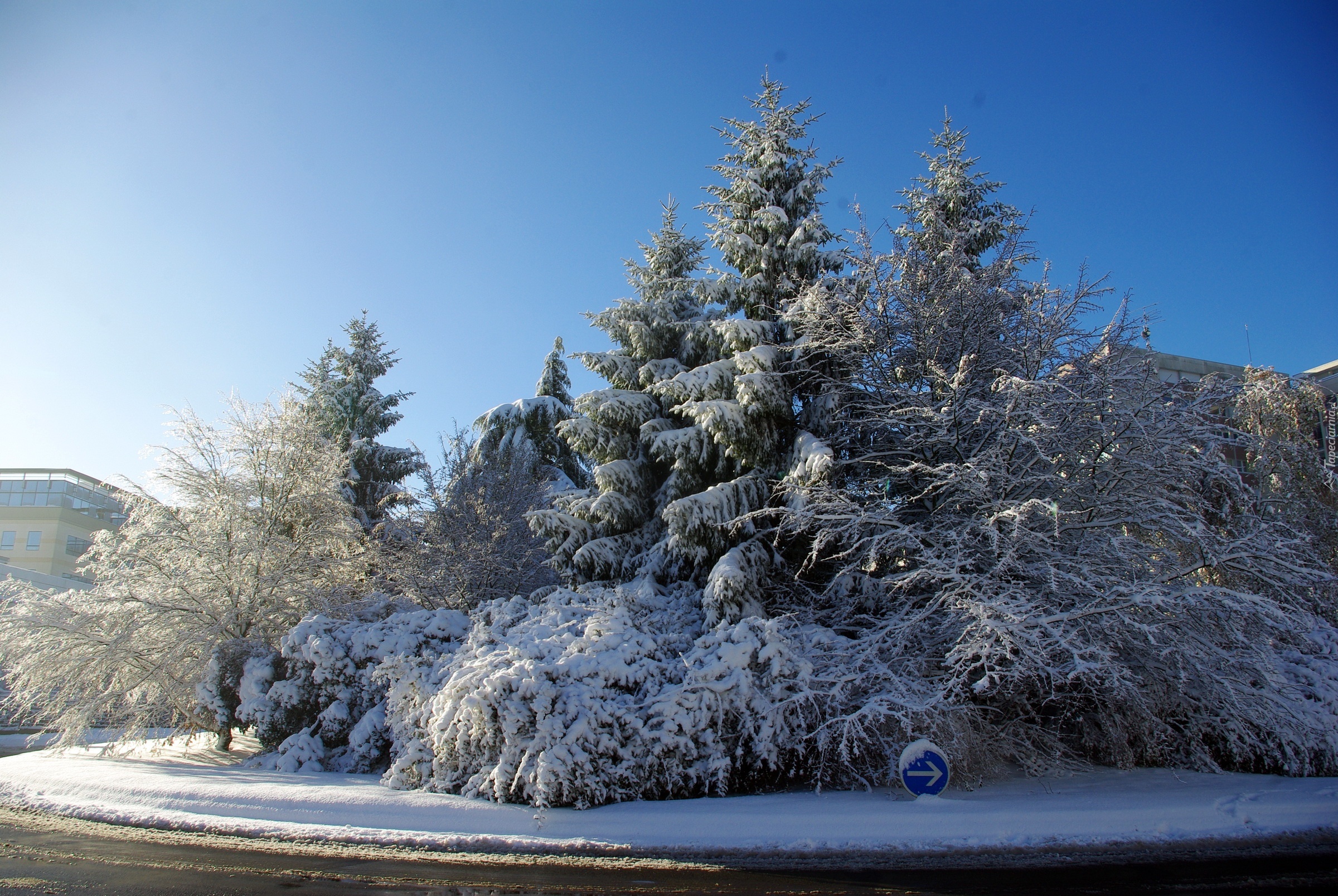 Edytor tapety: Droga, Ośnieżone, Drzewa, Zima