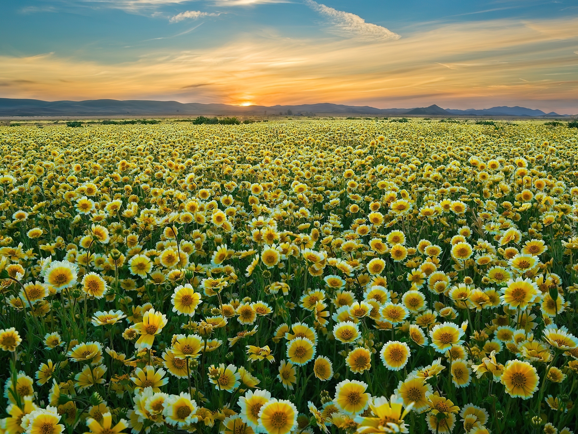 Edytor tapety: Polne, Kwiaty, Zachód, Słońca, Carrizo Plain National Monument