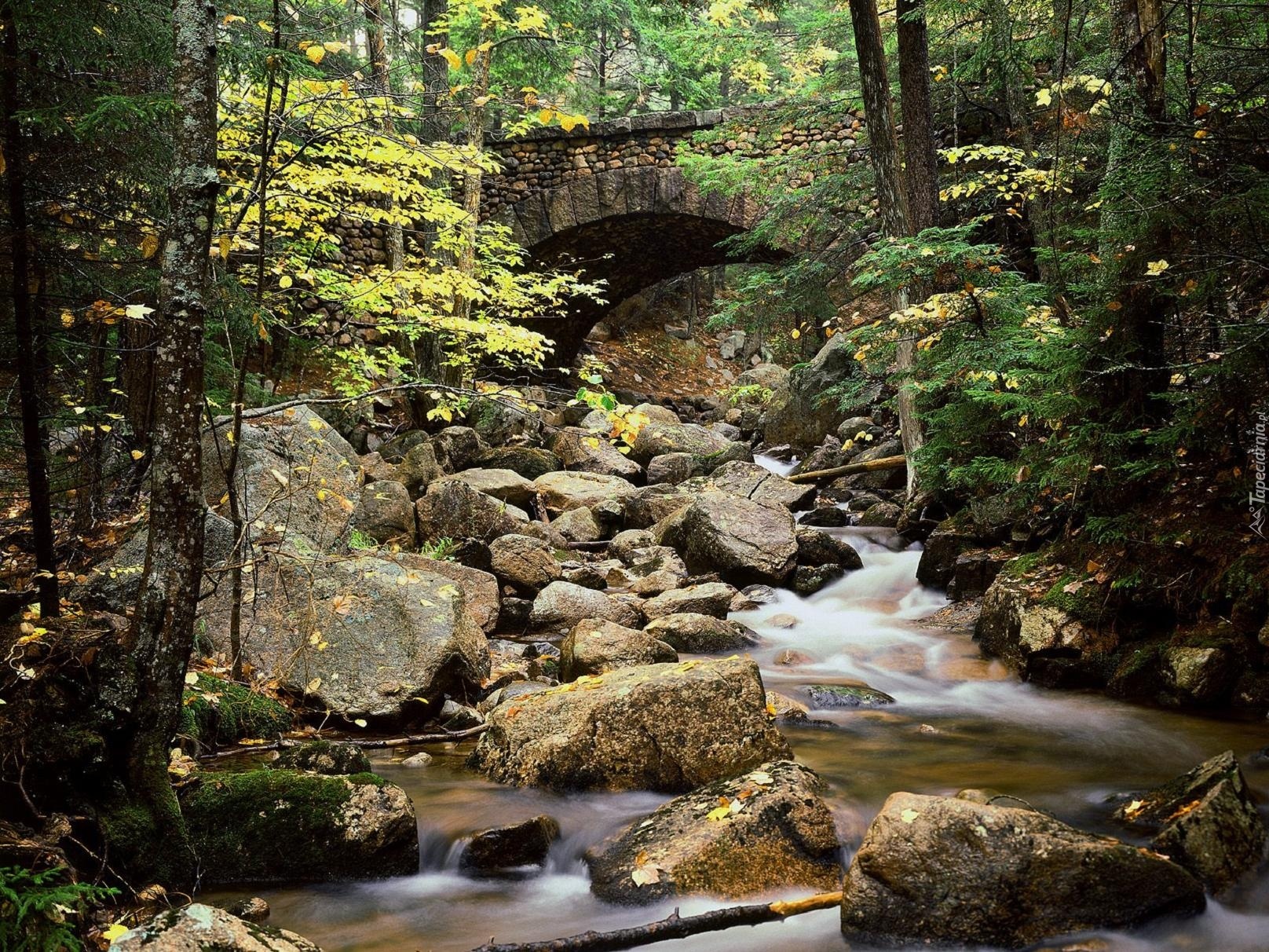 Edytor tapety: Potok, W, Lesie, Kamienie