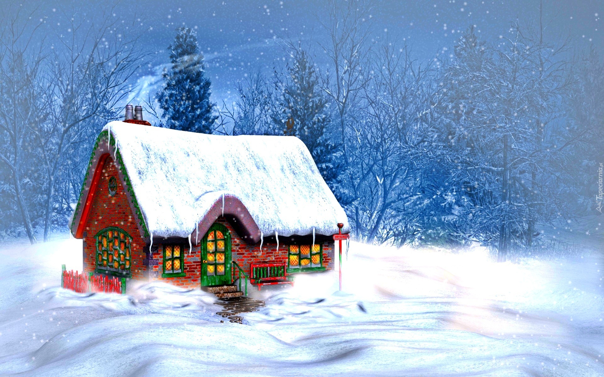 Edytor tapety: Domek, Zimowa, Zamieć, Śnieg