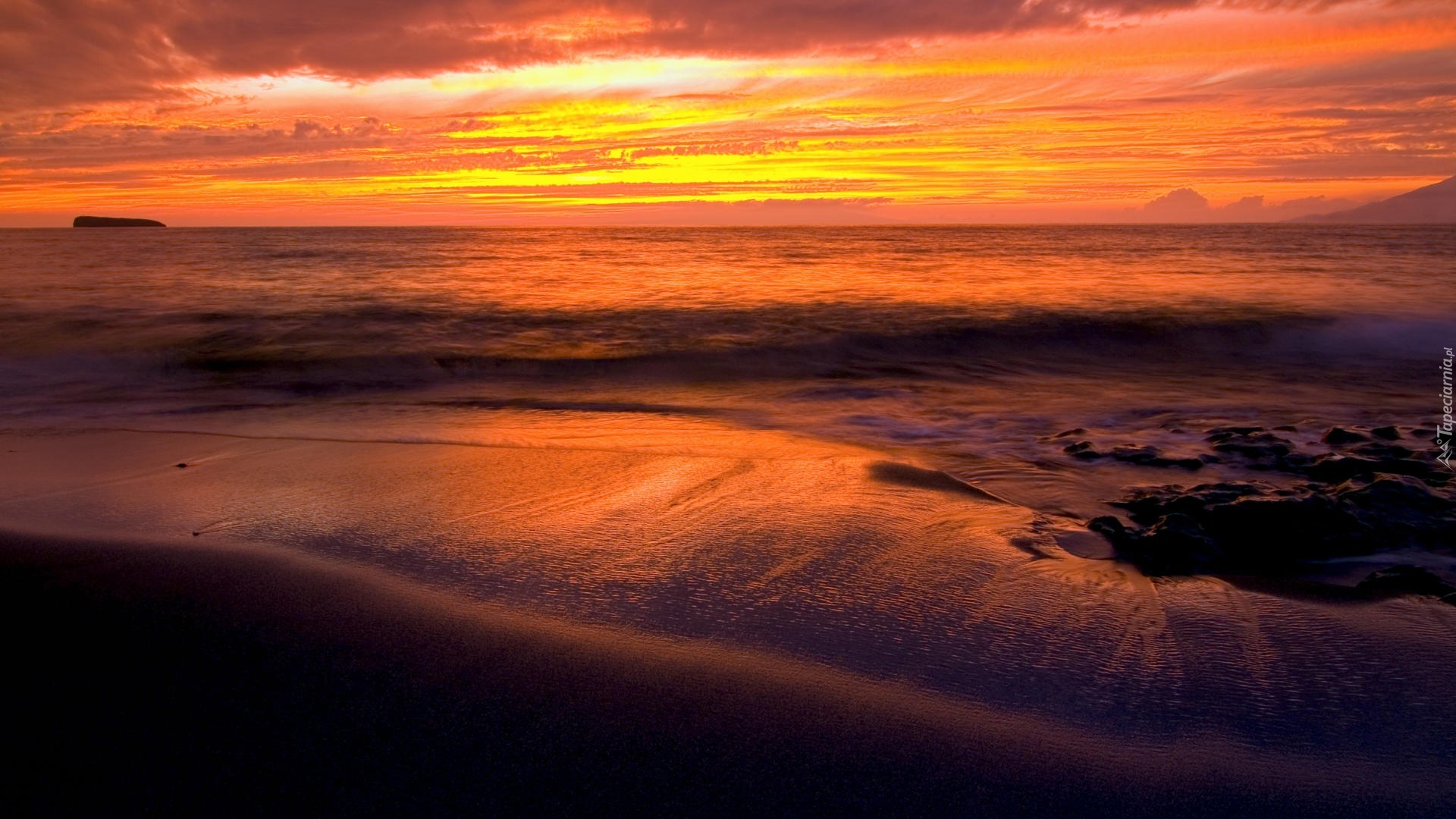 Edytor tapety: Morze, Plaża, Zachód Słońca, Chmury