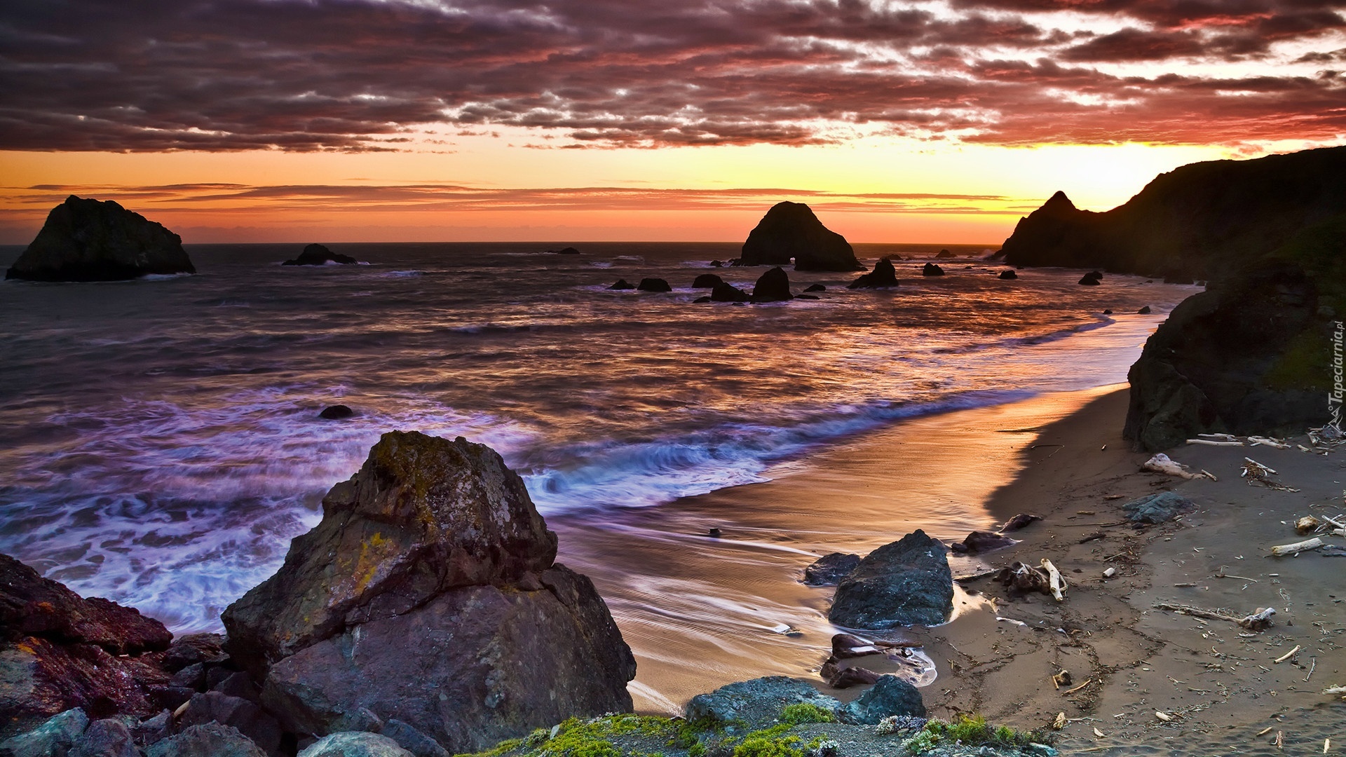 Edytor tapety: Zachód Słońca, Kamienie, Plaża, Morze