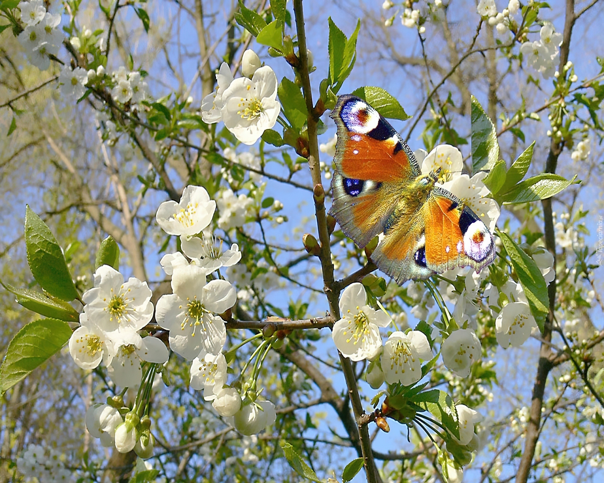 Edytor tapety: Motyl, Kwitnące, Drzewo