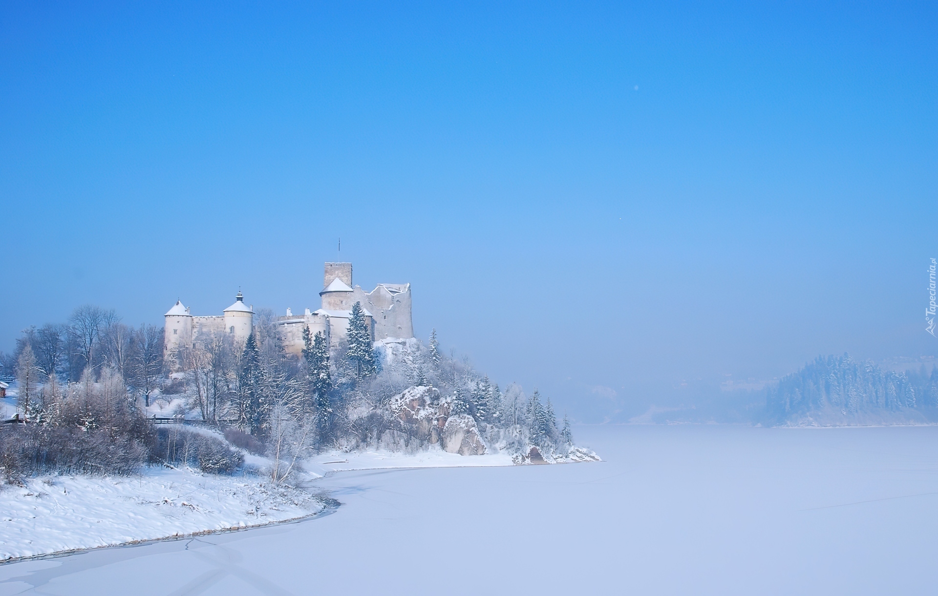 Edytor tapety: Polska, Niedzica, Pieniny, Zamek Dunajec w Niedzicy, Zbiornik Czorsztyński, Jezioro, Zima